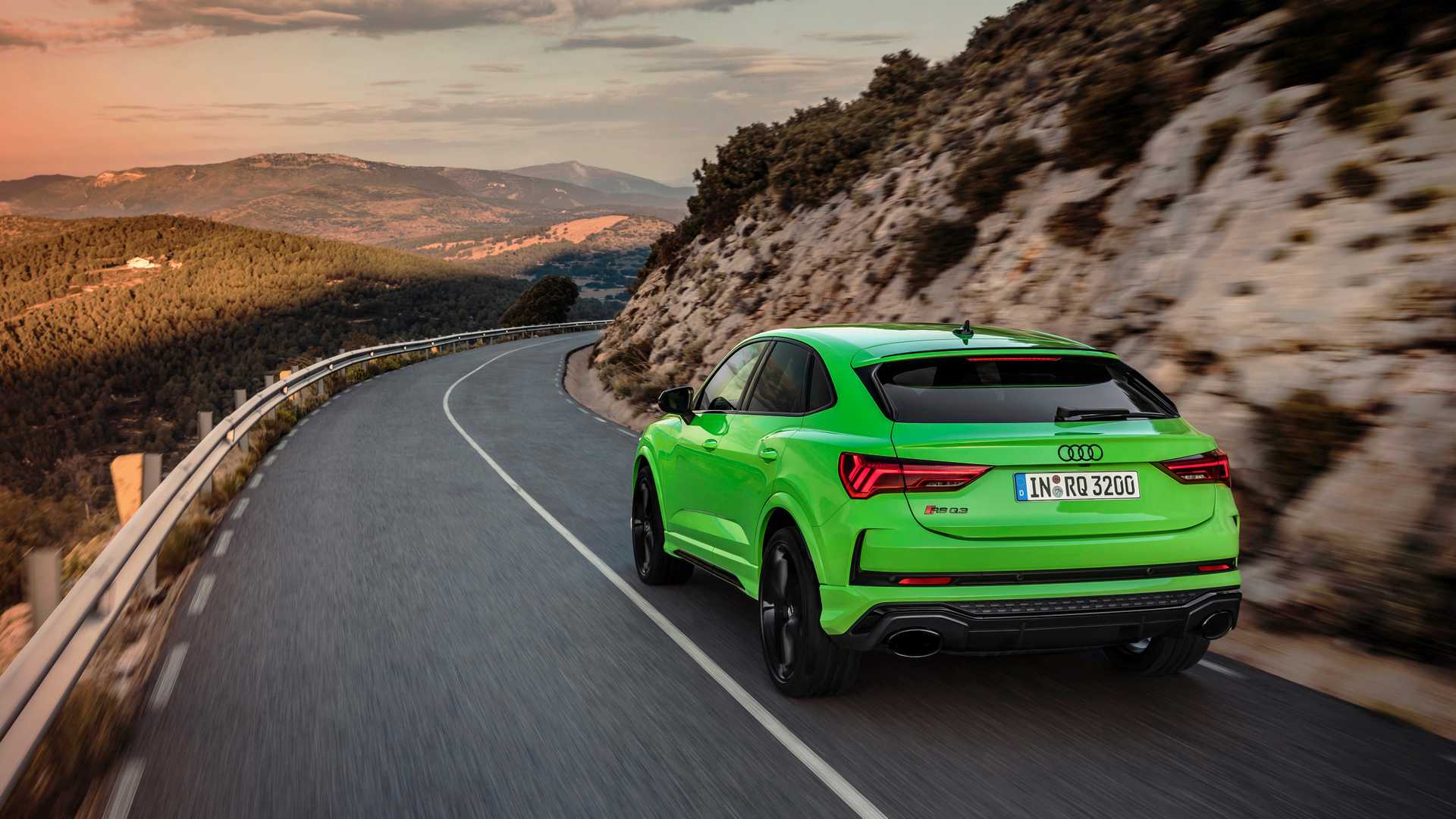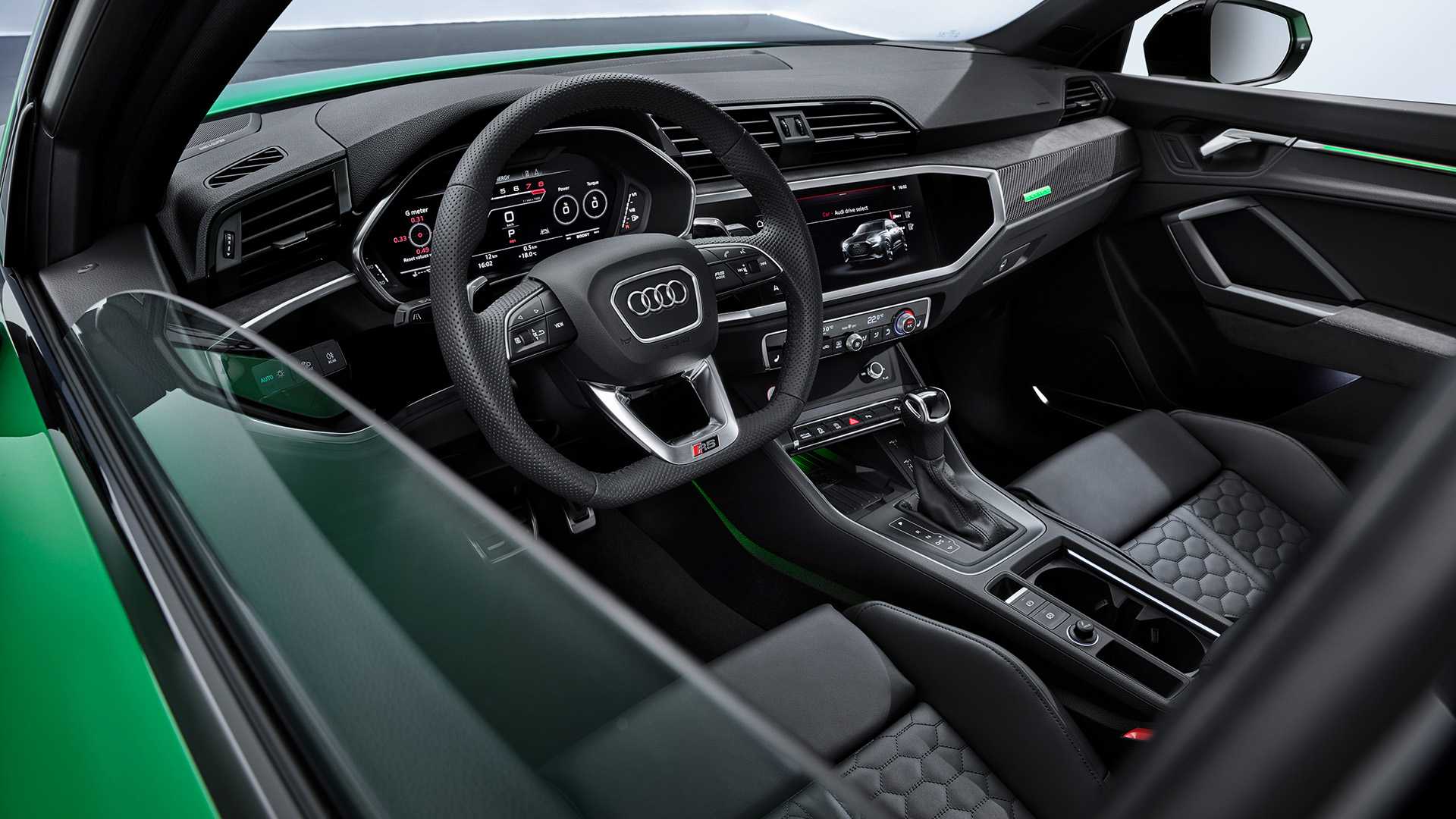 Oproti bežnej Q3 je verzia RS o 10 mm bližšie k vozovke. Za príplatok jazdí aj na adaptívnom podvozku. Rovnako je to aj v prípade bŕzd, šesť piestov je štandard. Kotúče sú ale v základe kovové, za doplatok keramické s hliníkovými strmeňmi. RS Q3 je zvonku jasne rozlíšiteľná podľa celočiernej prednej masky a veľkými bočnými otvormi v nárazníku. Difúzor vzadu ani dvojicu veľkých výfukov na „ne-RS“ verzii tiež nenájdete, rovnako ako 20″ kolesá. Za doplatok dokonca až 21″. Pre super extrovertné povahy je v ponuke žiarivo zelená farba Kyalami Green. Menej nápadná je šedá Nardo Grey. Interiér je mixom kože nappa a Alcantary, nechýbajú červené a modré zvýraznenia a prešívania na volante, sedadlách či radiacej páke. A aby bolo info kompletné aj z časového hľadiska, dopĺňame, že RS Q3 sa do predaja dostane začiatkom budúceho roka.