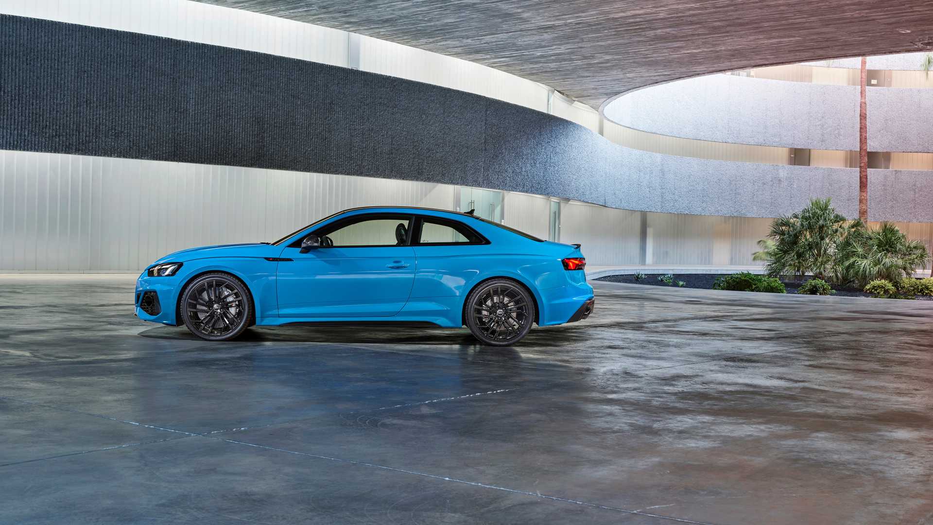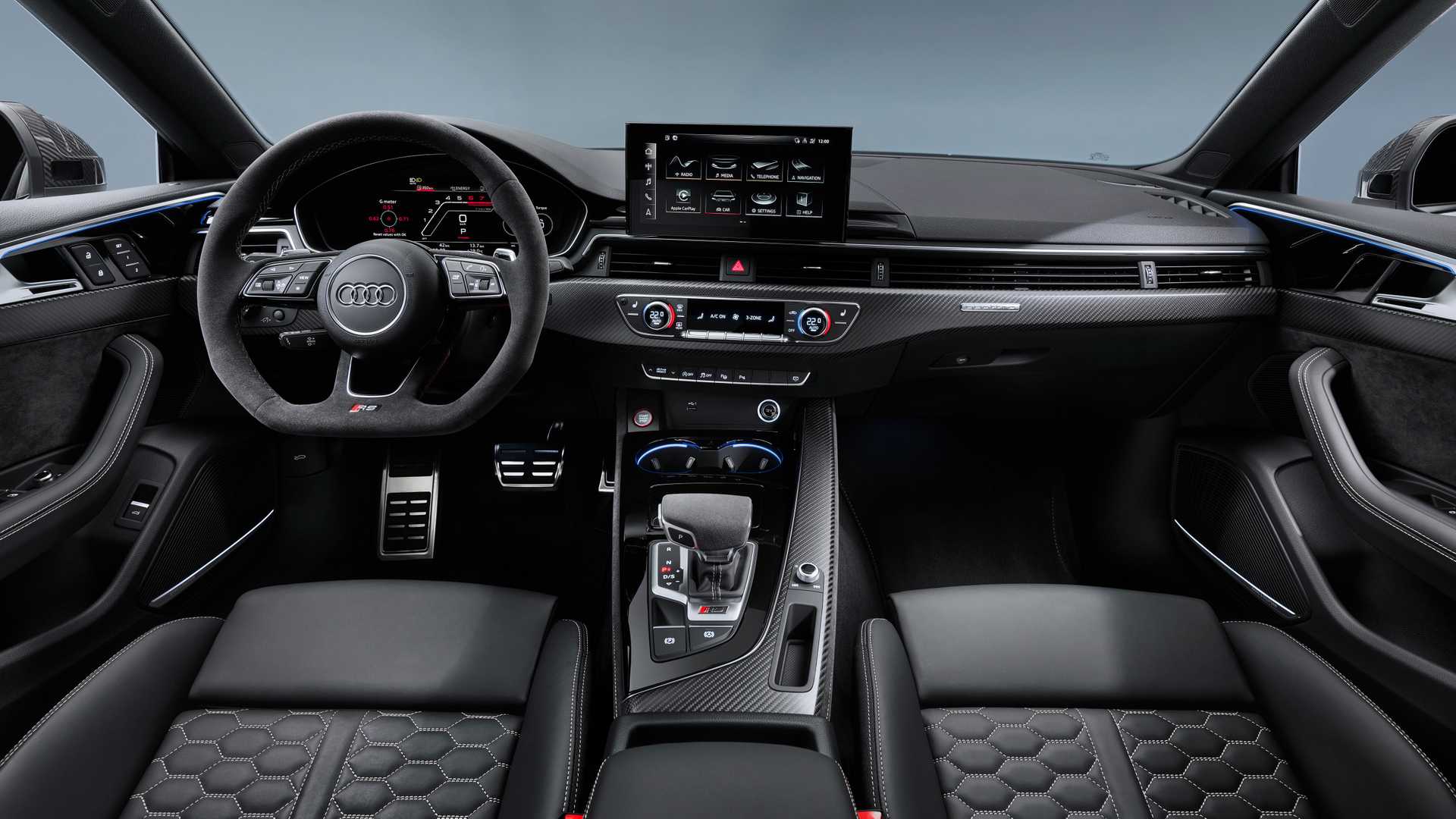 Na prvý pohľad najvýraznejšou zmenou je rozmernejšia predná maska a otvory pre prívod vzduchu v štýle klasického Quattra z 80.rokov. Taktiež svetlá majú pozmenený tvar a môžu byť vybavené technológiou matrix LED a laserového svietenia. V základe jazdí RS5 na 19″ kolesách, k dispozícii sú ale aj 20″ dostupné až v troch rôznych podobách. Štandardné brzdy sú oceľové, príplatkové karbón-keramické. Novinkou sú dve nové farby. Červená Tango a modrá Turbo. Strecha je však čierna a to preto, že je karbónová, ktorá je o 4 kg ľahšia oproti bežnej. V kabíne vládne digitalizácia v podobe 10,1″ a 12.3″ displejov systému Audi Virtual Cockpit.