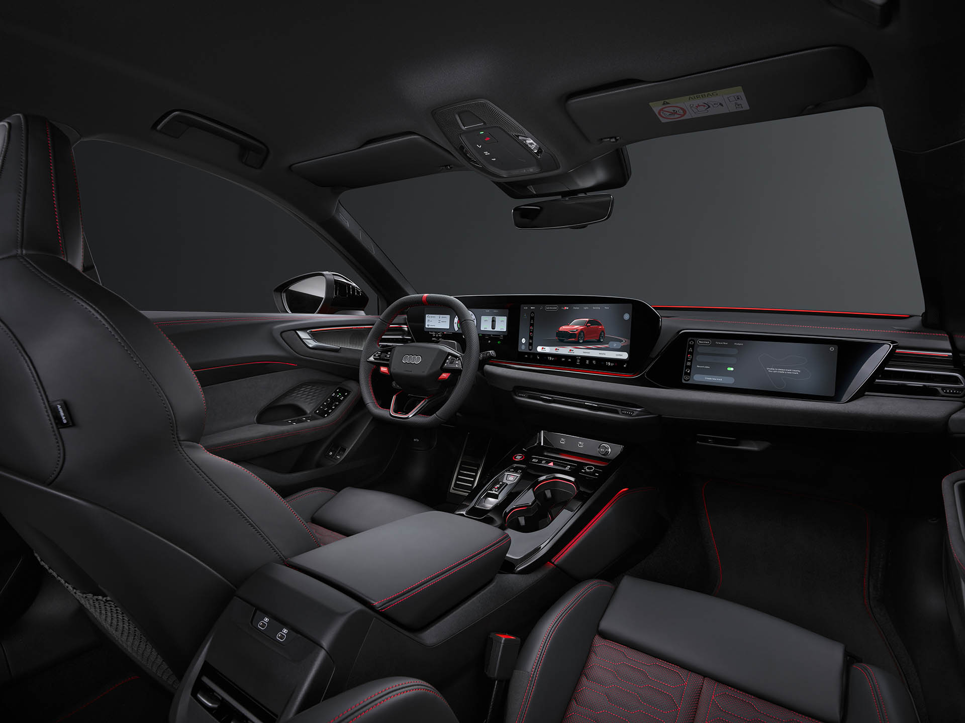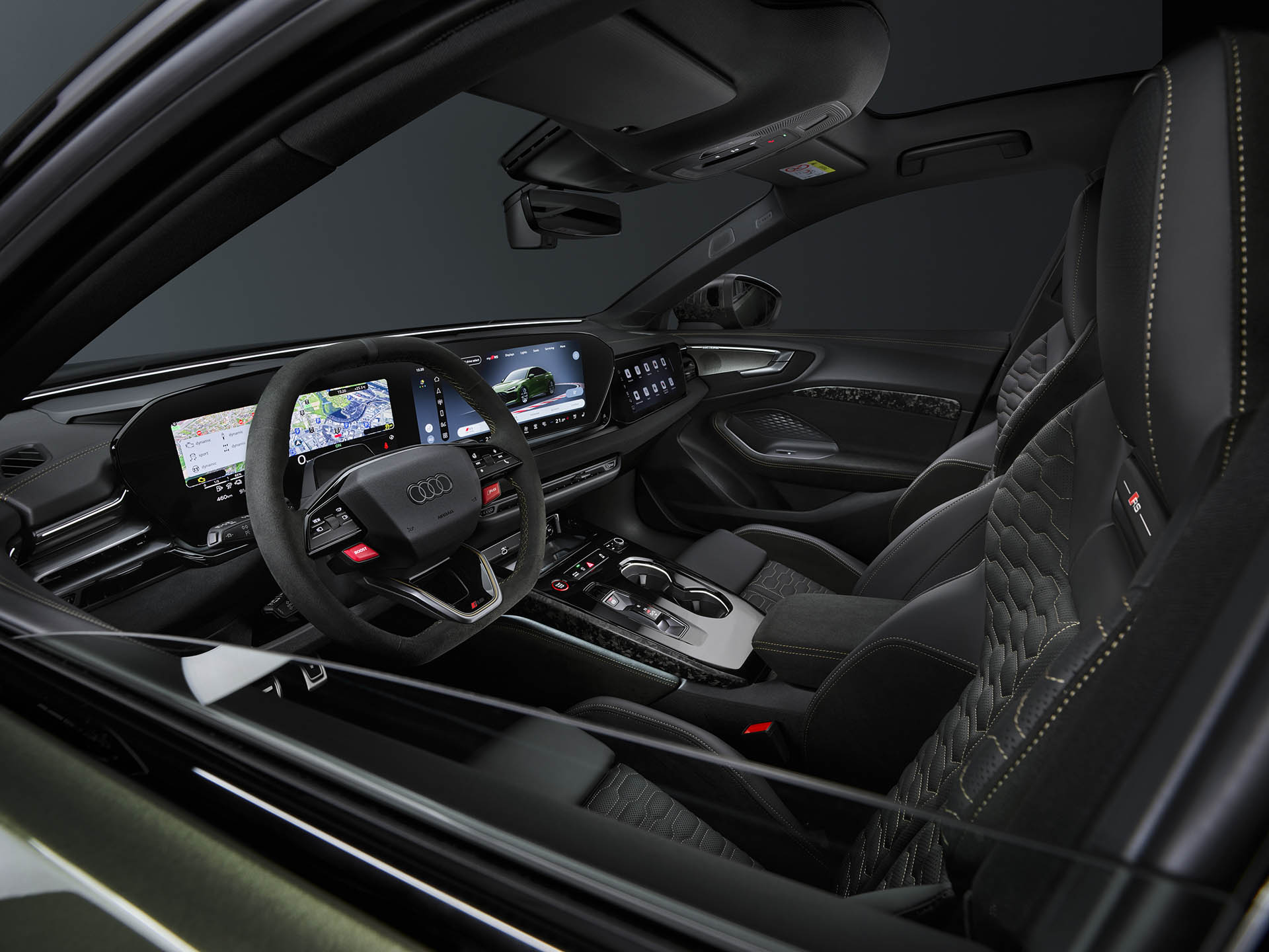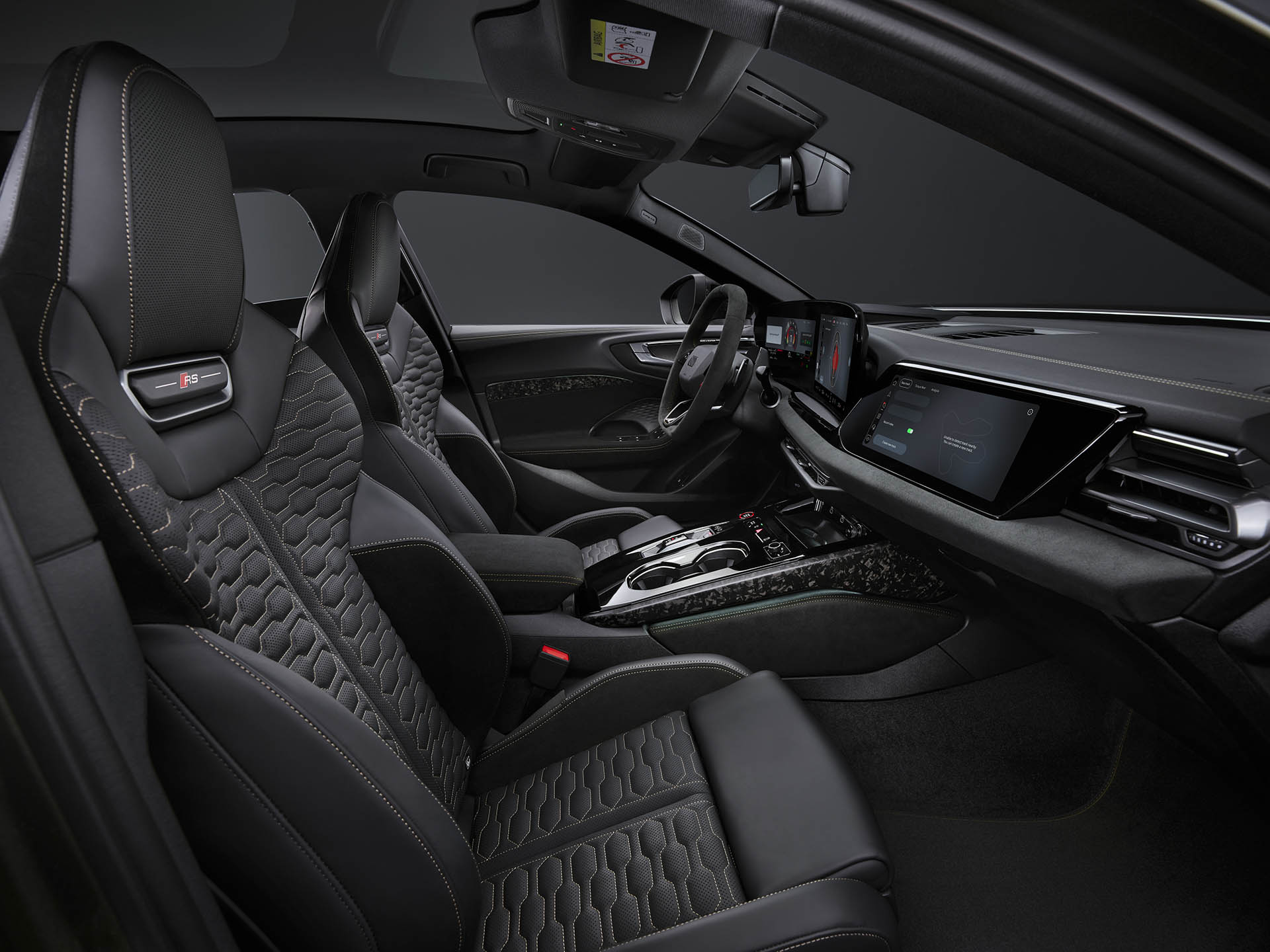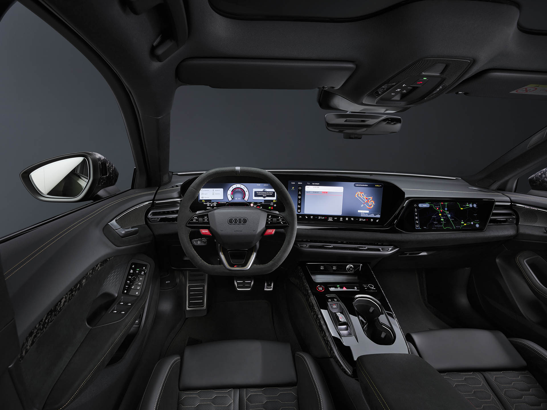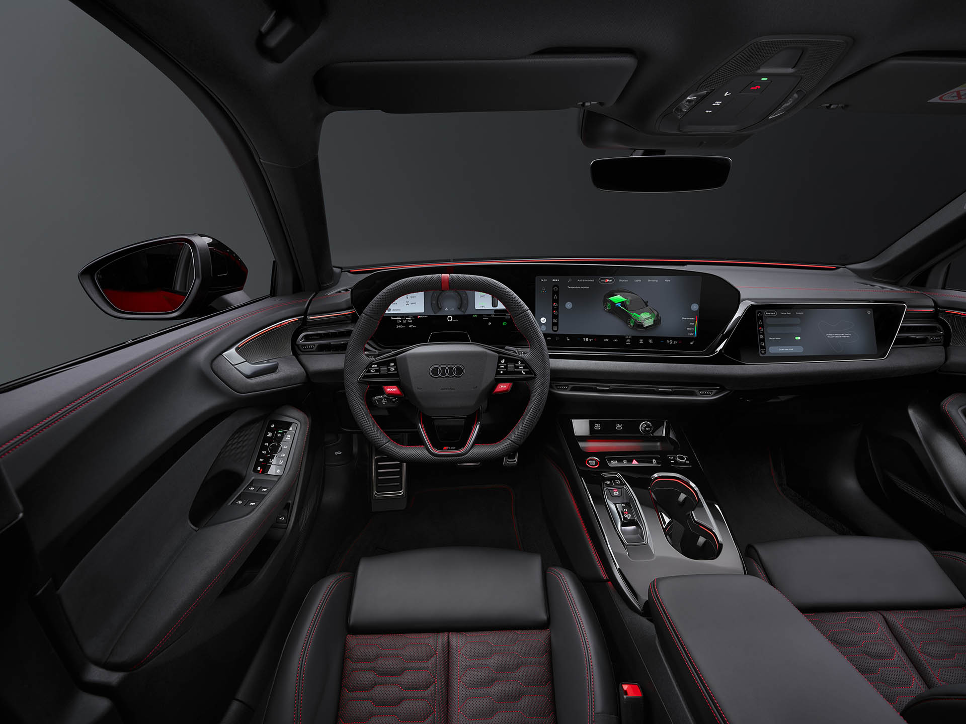 Interiér RS5 je charakteristický digitálnymi prístrojmi a veľkým centrálnym displejom infotainmentu. Športové sedadlá disponujú výrazným bočným vedením a sú navrhnuté tak, aby poskytovali optimálnu oporu pri dynamickej jazde. Použité materiály zahŕňajú kombináciu kože, mikrovlákna a uhlíkových dekorov.