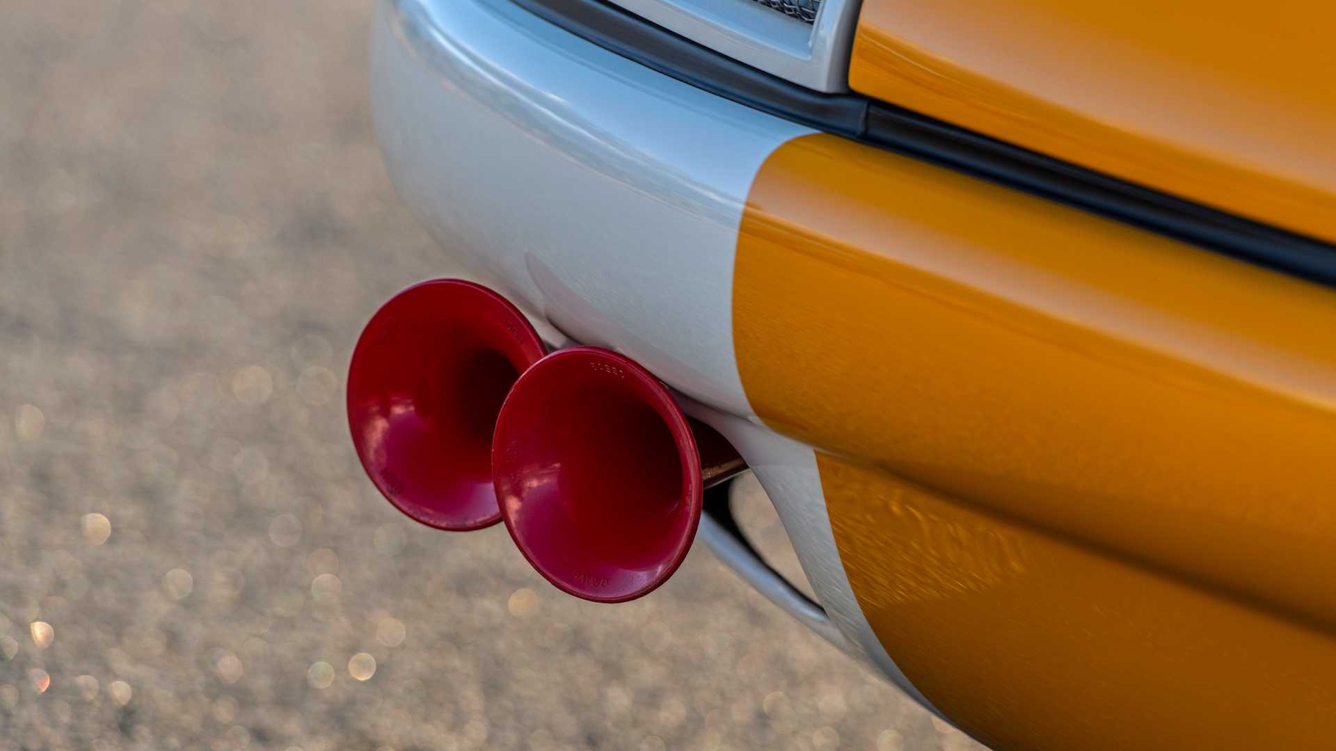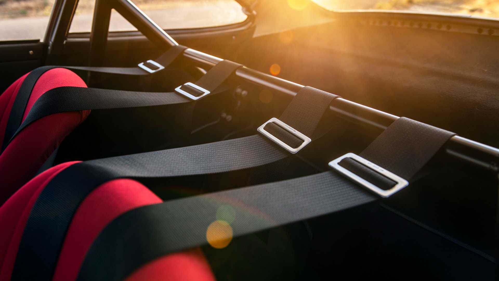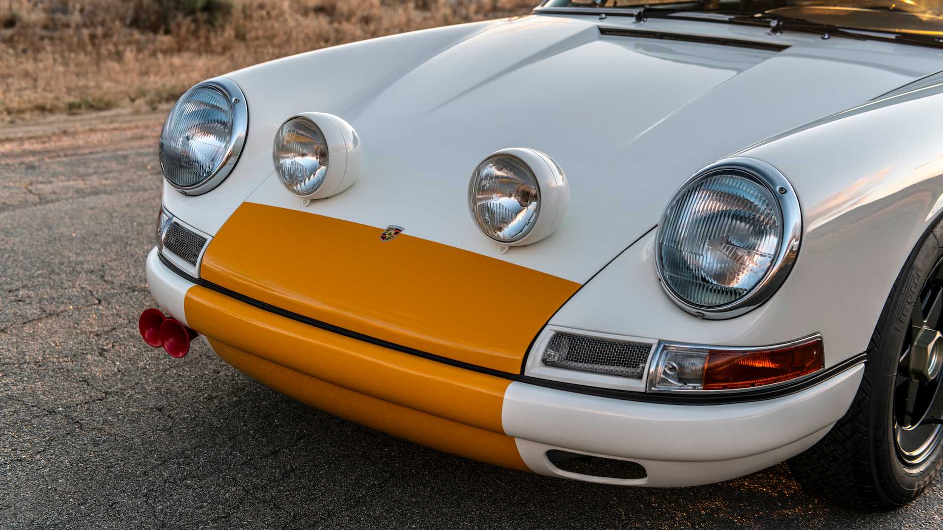 S citom spravený kúsok v bielej farbe, ktorú decentne dopĺňa oranžový obdĺžnik v prednej časti. Všimnite si aj červený klaksón v nárazníku a tiež okrídleného koňa na bokoch. Ide o Pegasa z loga olejárskej firmy Mobil. Klasické čierne päťlúčové disky sú stávkou na istotu. Na nich sú obuté slicky Pirelli CN36. Pri pohľade na dvojicu prídavných svetiel na kapote si spomeniete, že boli časy, keď Porsche jazdilo na vrcholovej úrovni rally. V interiéri sú krásne červená anatomické sedačky, ktoré by ale asi dnešnými homologačnými predpismi neprešli, keďže im chýba opierka hlavy. Vyzerajú ale úžasne a pripútanie do nich majú za úlohu päťbodové pásy MOMO. Malý trojramenný kožený volant je od Prototipo a za ním sú klasické jednoduché analógové ukazovatele prekryté drevenou kupolou.