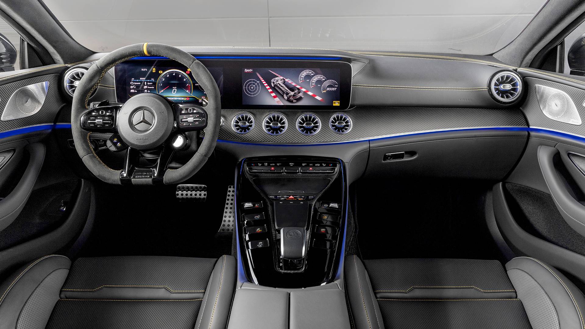 Aspoň tak to tvrdí samotné PR oddelenie Mercedesu v zastúpení Jerryho Stamoulisa. Má to logiku. A to takú, že súčasná, tretia generácia CLS, nemá v ponuke verziu 63 AMG, vrcholom je “iba” polovičný hybrid CLS 53. To znamená, že sa značka rozhodla zaútočiť na trh a najmä na pozíciu Porsche Panamera Turbo či BMW M6 Gran Coupe úplne novým modelom, nazvaným jednoducho a výstižne GT 4 Door Coupe.