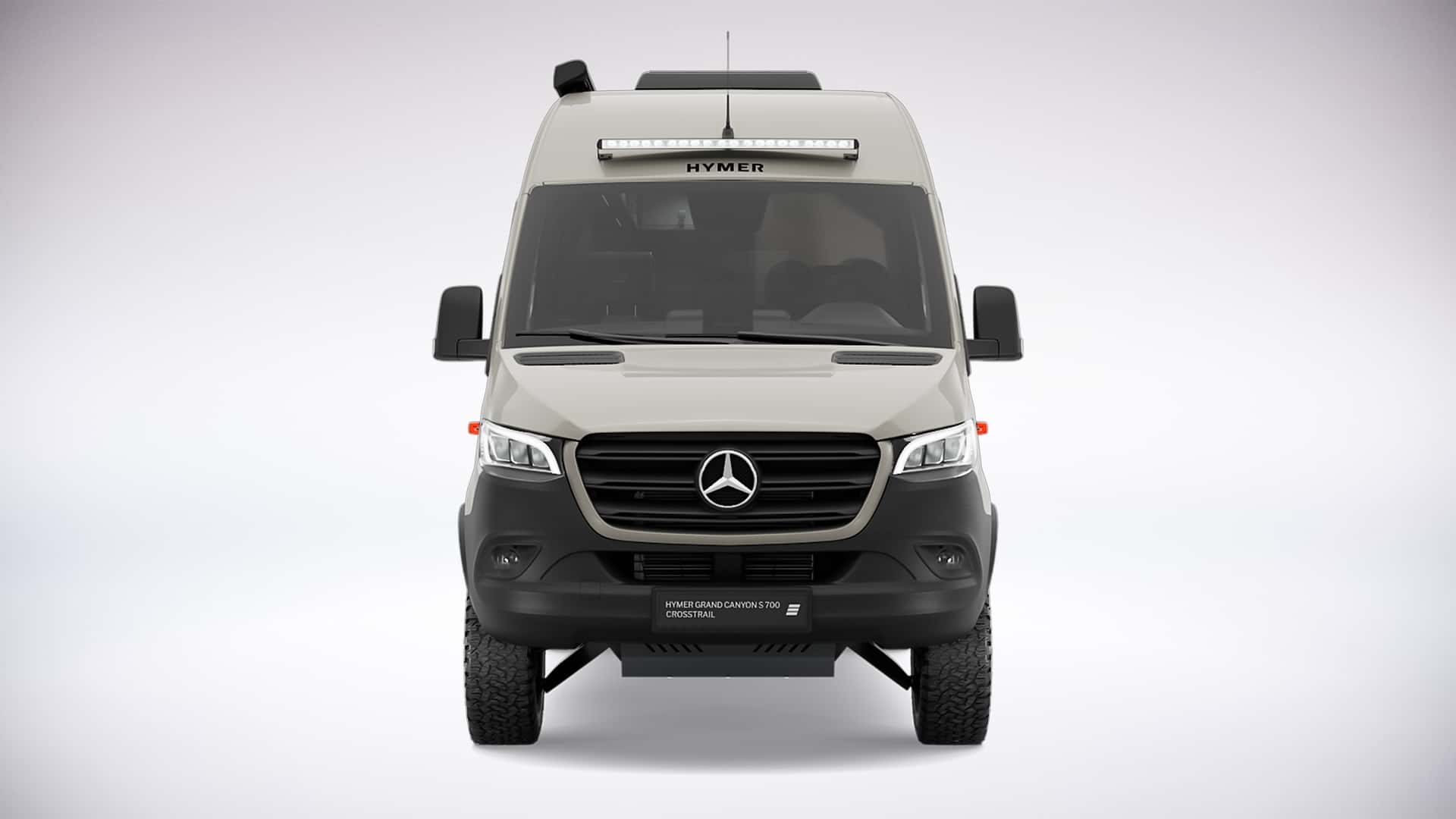 Výrazným prvkom Hymer Grand Canyon S 700 Cross Trail je LED svetelná rampa nad kabínou, ktorá zlepšuje viditeľnosť pri jazde mimo osvetlených komunikácií. K tomu sa pridávajú 18-palcové off-road disky s AT pneumatikami a upravený zvýšený a spevnený podvozok, ktorý zvládne horší povrch s väčšou istotou.