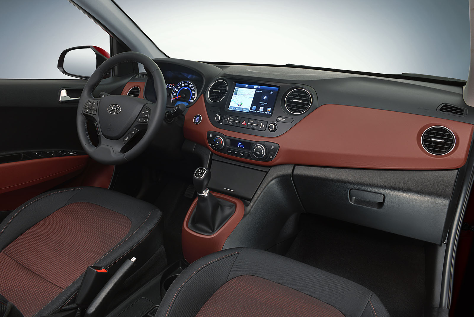 Vnútro si zachovalo všetky tvary, ale dostalo nový systém s dotykovou obrazovkou. Tá je so siedmimi palcami väčšia ako vo väčšej Elantre. Naviac podporuje Apple CarPlay a Android Auto. Keď už sme pri tom, používa niekto vôbec tieto vymakané funkcie? My sme ich skúsili a nepresvedčili nás, že toto je cesta.