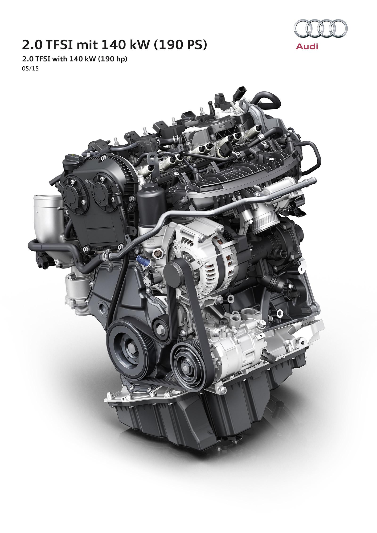 Tiež má byť najúspornejším dvojlitrom vo svojej triede. S objemom presne 1984 centimetrov kubických ponúkne, vďaka prepĺňaniu, výkon 140 kW (190 k) a krútiaci moment 320 Nm dostupný od 1450 do 4400 otáčok za minútu. S novým sedanom A4, ľahším až o 140 kilogramov, má mať kombinovanú spotrebu iba 5 litrov benzínu na sto kilometrov. Ak by niekto pochyboval, je to štvorvalec.