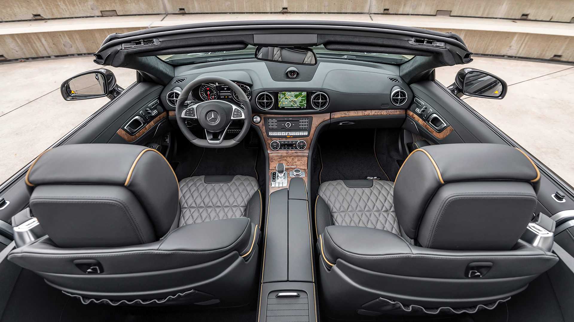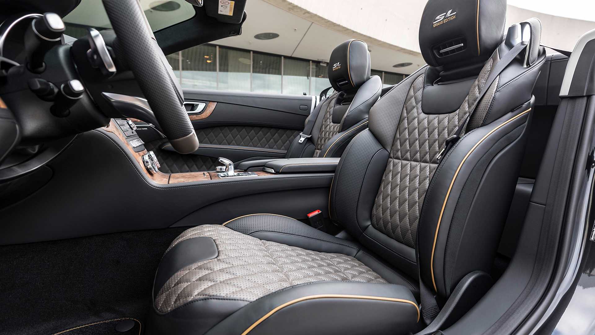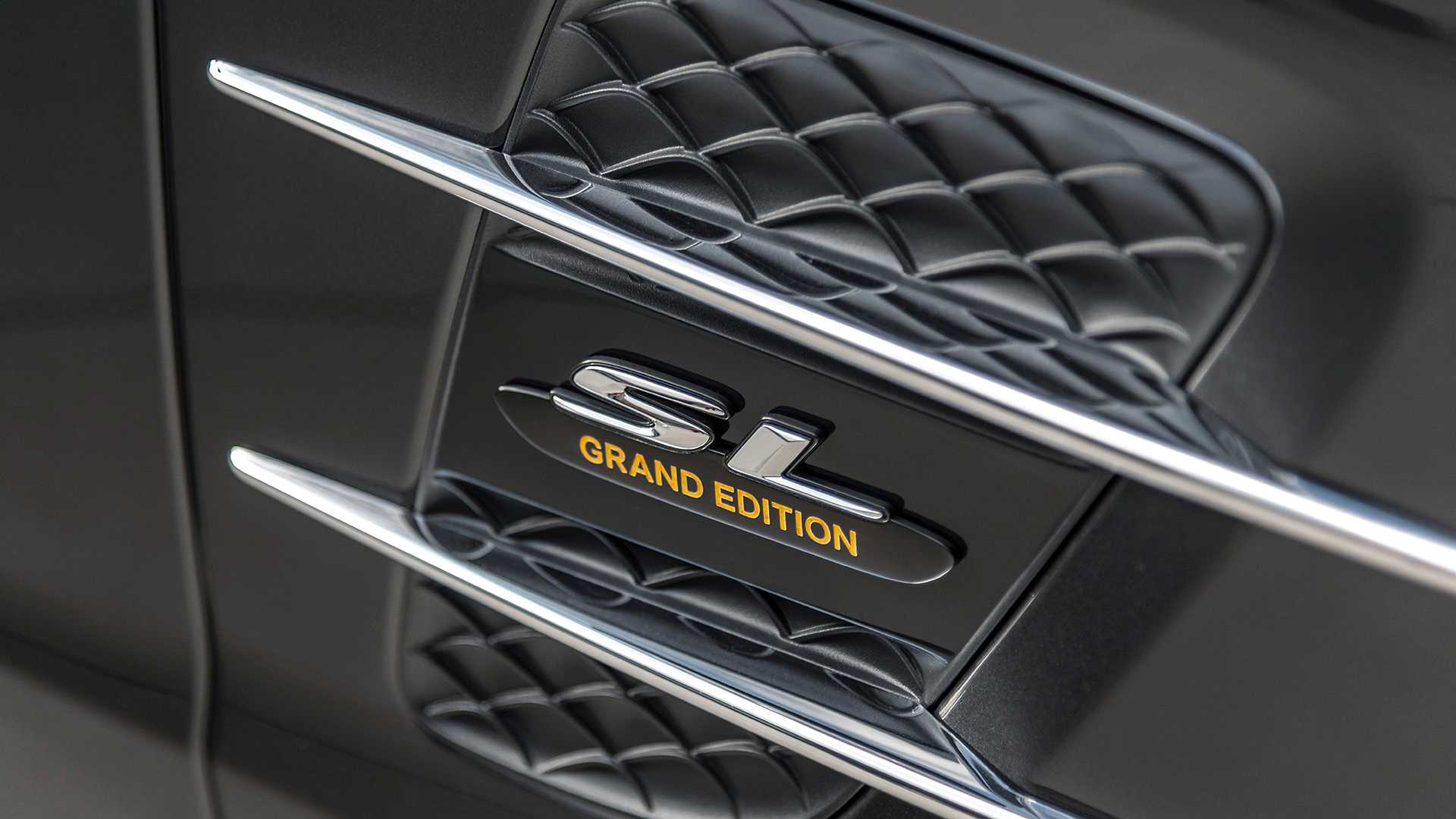 A tým krokom je Grand Edition, teda limitovaná edícia, ktorá si za svoj základ berie modely SL 450 a 500, teda najvyššie motorizácie. Limitka je o pár milimetrov bližšie k zemi a má tuhší podvozok a tiež jazdí na 10 lúčových diskoch od AMG. Tie majú vpredu 19“, vzadu ešte o jeden viac. Ich lesklý vzhľad s čiernym vnútorným lemovaním ide ruka v ruke s grafitovo šedou farbou karosérie, ktorá je jedinou možnosťou, takže Grand Edition si určite s bežným SL nepomýlite. Predná maska je zasa výnimočná použitím chrómu a matnej striebornej. Uznávame, nie sú to žiadne výstredné a radikálne úpravy, ale ako nápoveda že sa dívate na verziu Grand Edition slúžia aj malé logá na bokoch. Tie sú aj na sedadlách z bielo-hnedej kože nazvanej Tundra Brown Pearl, ktorých stredy sú prešívané. Volant je perforovaný, takže ani na letnom slnku sa vám ruky príliš nezapotia.