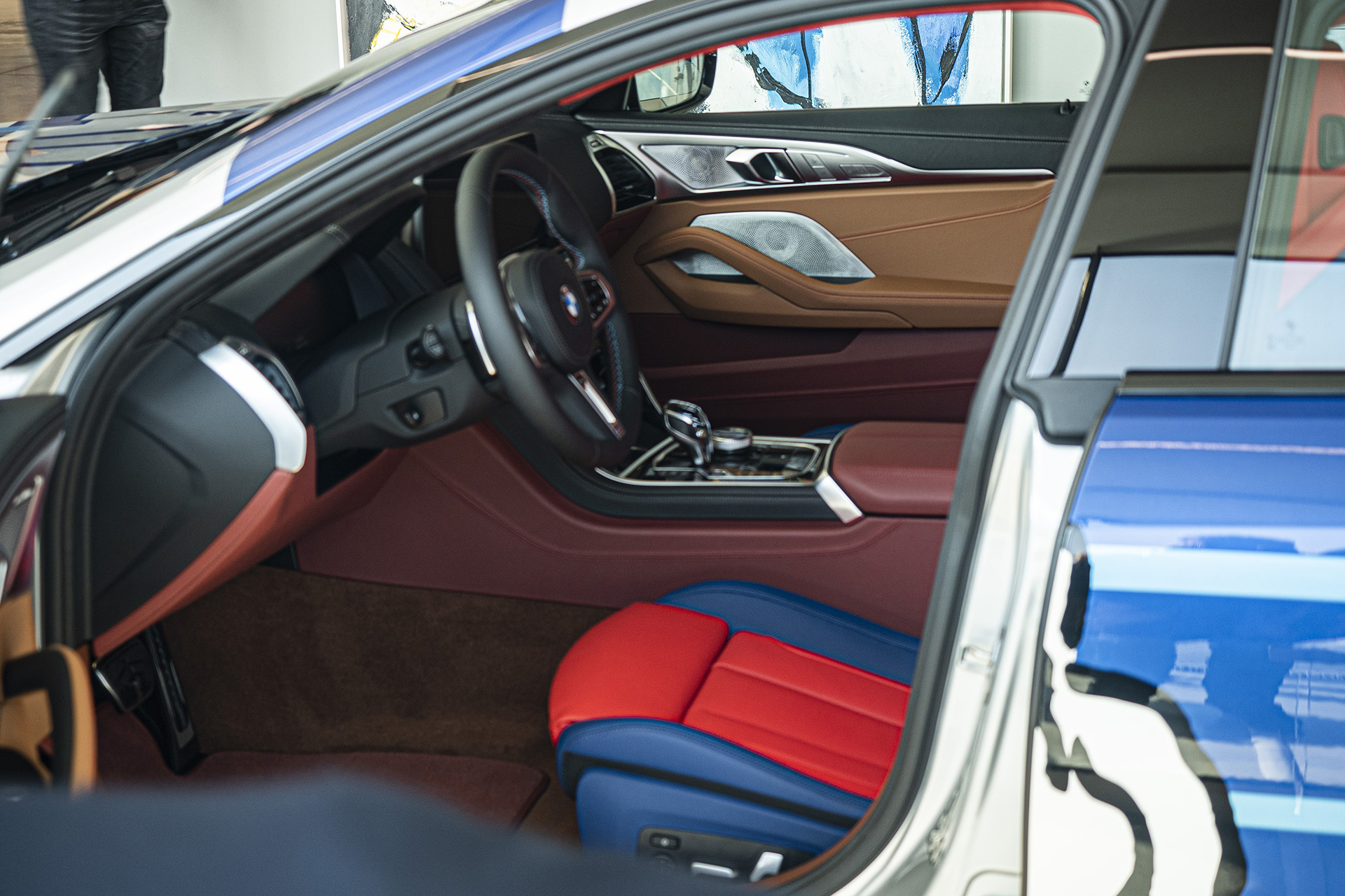 Je až fantastické, že sa slovenskému importérovi podarilo predstaviť nový model naživo ani nie 24 hodín po svetovej premiére. Prvá zastávka na prezentačnej tour však bola pri niečom úplne inom. Ako prvú som si pozrel osmičku Gran Coupé od Jeffa Koonsa. Výrazné vonkajšie sfarbenie je lakované, nie nalepené a každý z 99 kusov už má svojho majiteľa. Interiér dostal sedadlá s červeno-modrým čalúnením, čo má pripomínať niektorého zo superhrdinov. Je to Superman? Alebo Spiderman? V každom prípade je to veľmi zaujímavá kreácia, ktorá bude určite pútať pozornosť nielen na cestách, ale aj v súkromných zbierkach.