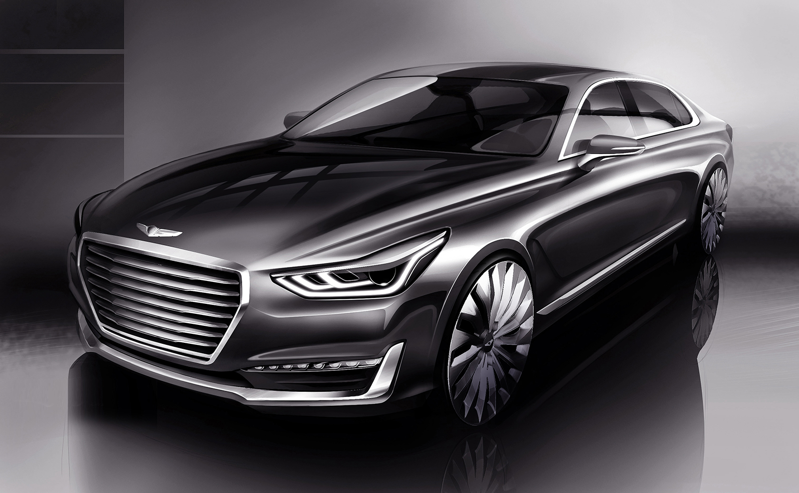 Luxusná divízia má začať rovno zhurta veľkým sedanom. Prvým modelom bude G90. Tvary akosi pripomínajú Bentley. Najmä pri pohľade zvoku. Na Rolls by bolo treba iný koncept otvárania dverí. Sekcia dizajnu Prestige Design Division označuje tvary ako Atletickú eleganciu. Zaujímavé je, že G90 sa začne už budúci mesiac predávať v domácej Kórei pod názvom EQ900.