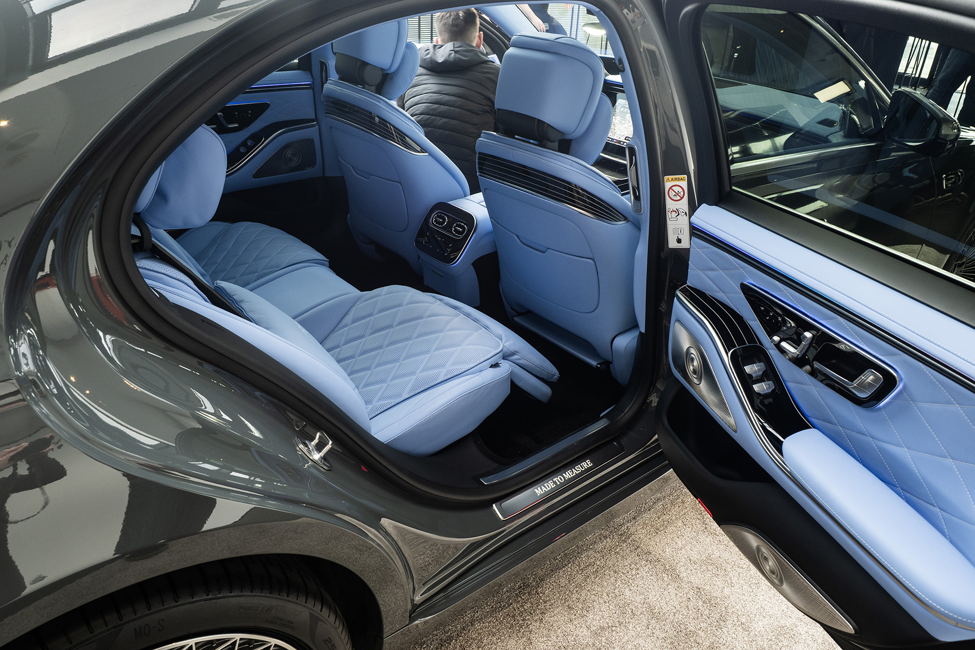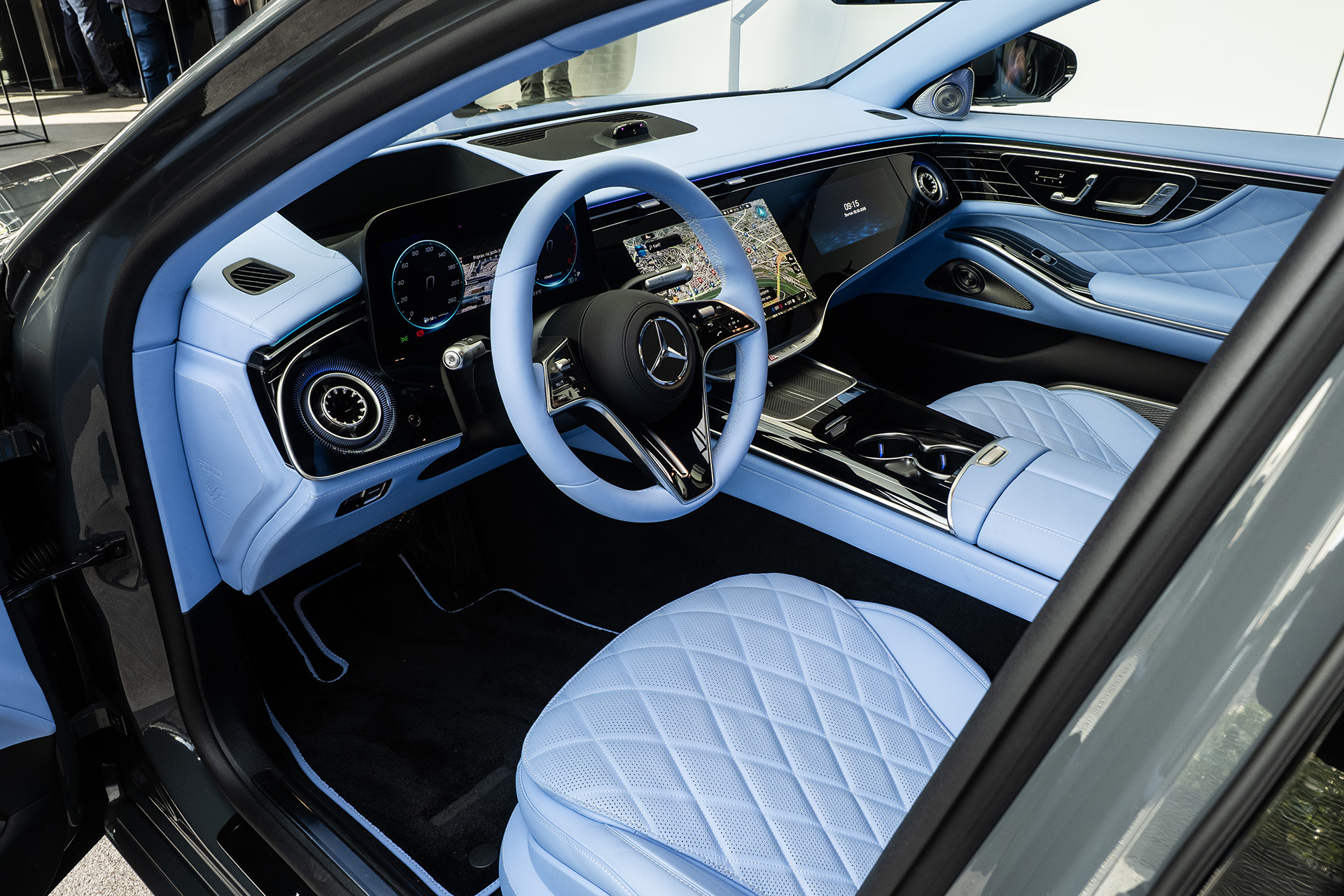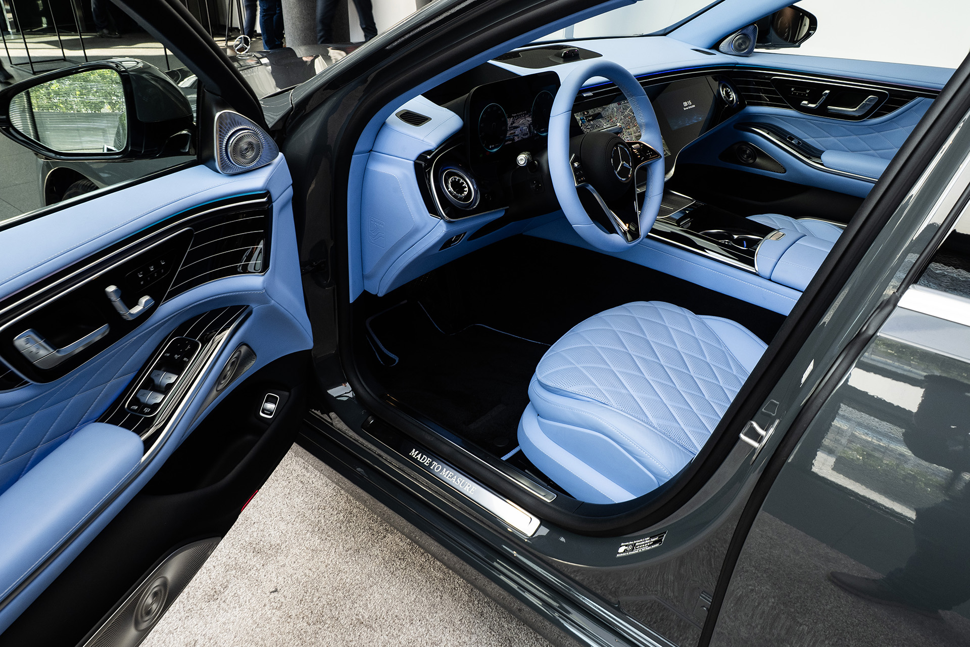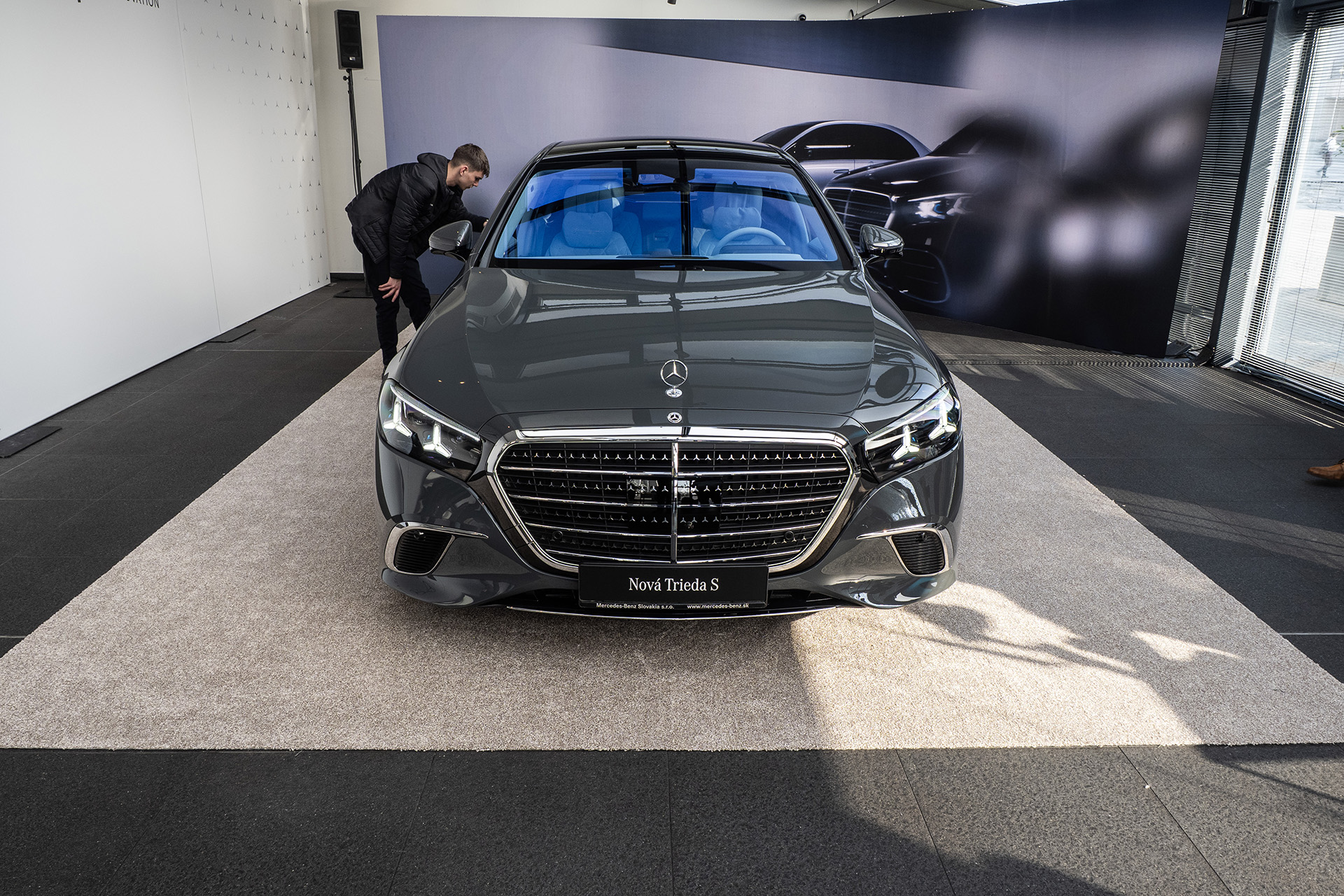 Presne z tohto programu som si pozrel aj prvý kus Triedy S na Slovensku. Zvonka sivá farba nepôsobí výrazne okázalo. Ale vnútorná bledá modrá mi vyrazila dych. Takéto prevedenie naozaj na mieru predstavuje určite príplatok väčší ako klasické čalúnenia Manufaktur z bežnejšej ponuky. Zachytil som niečo o cene 47-tisíc eur.