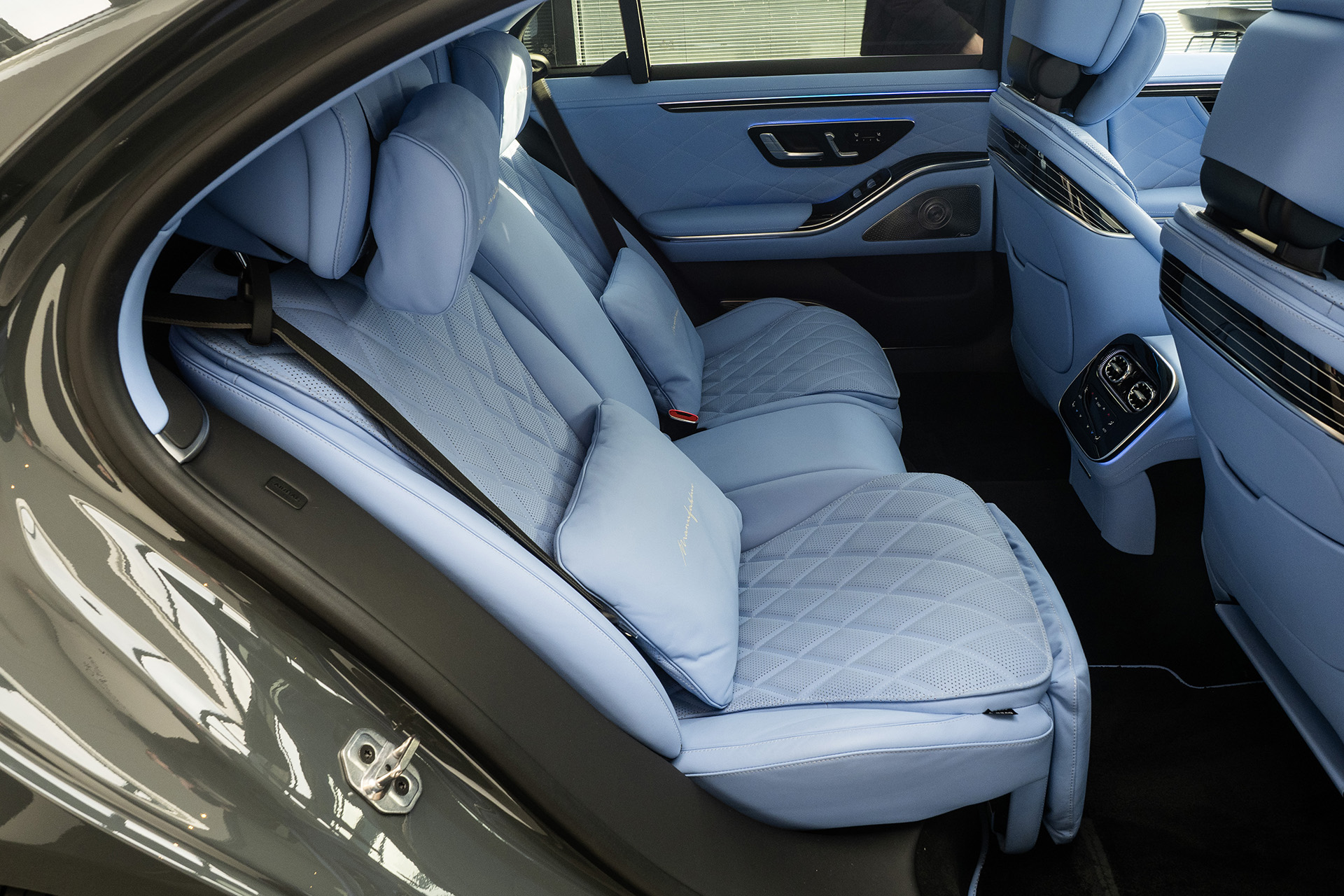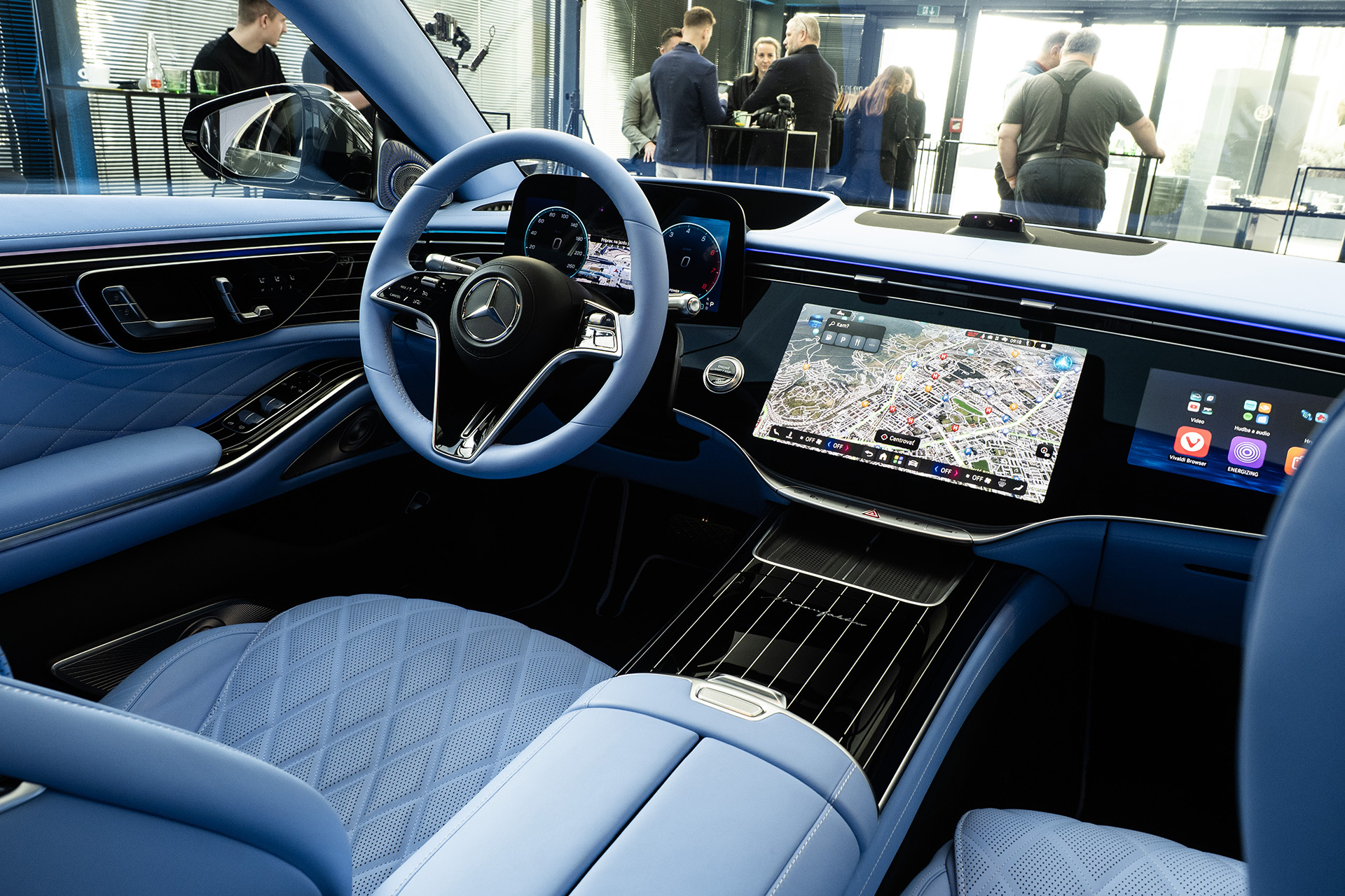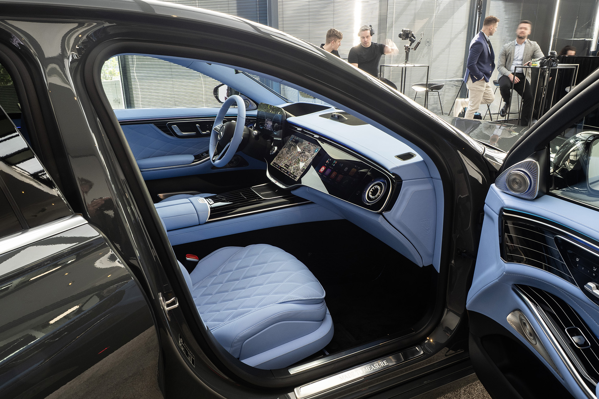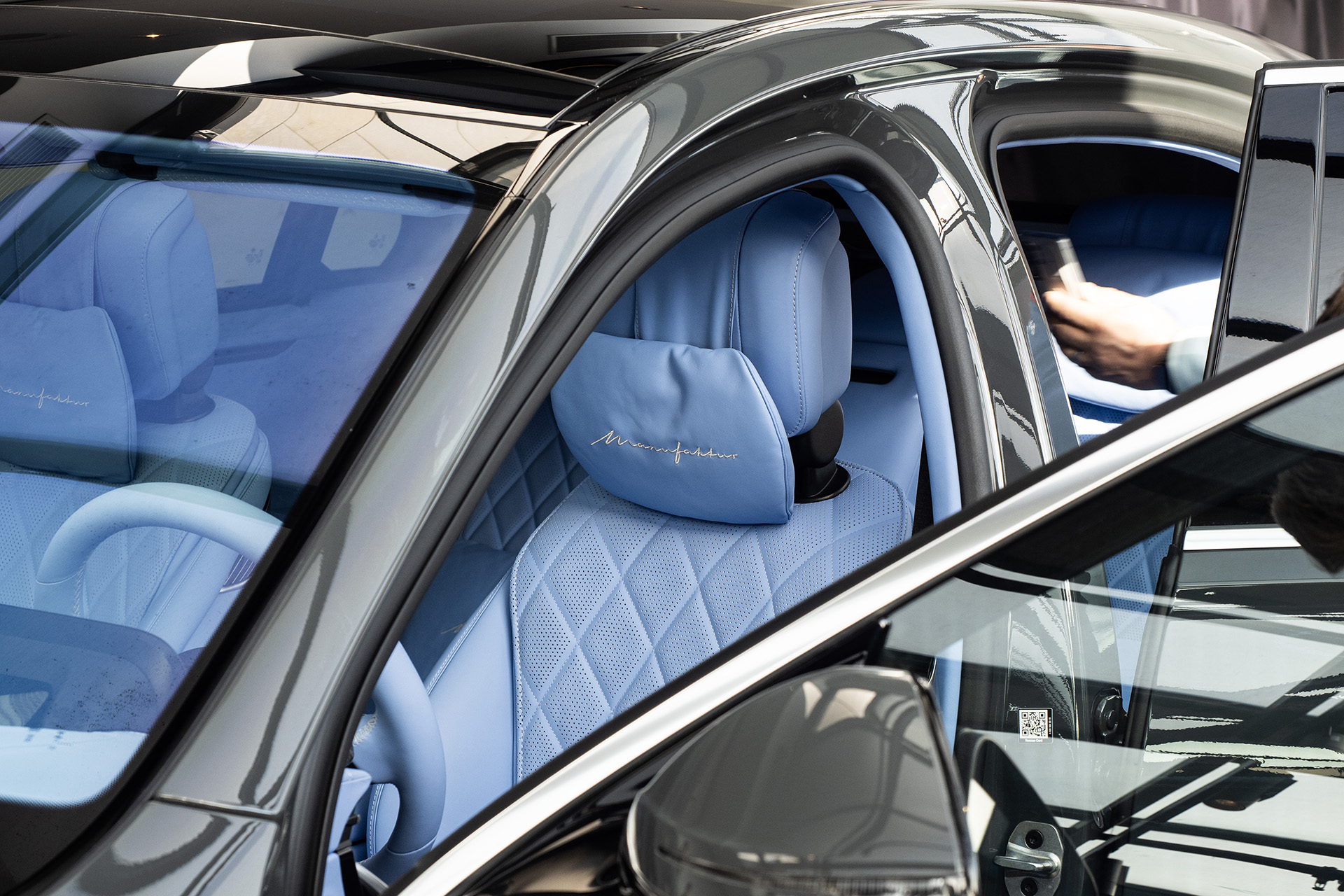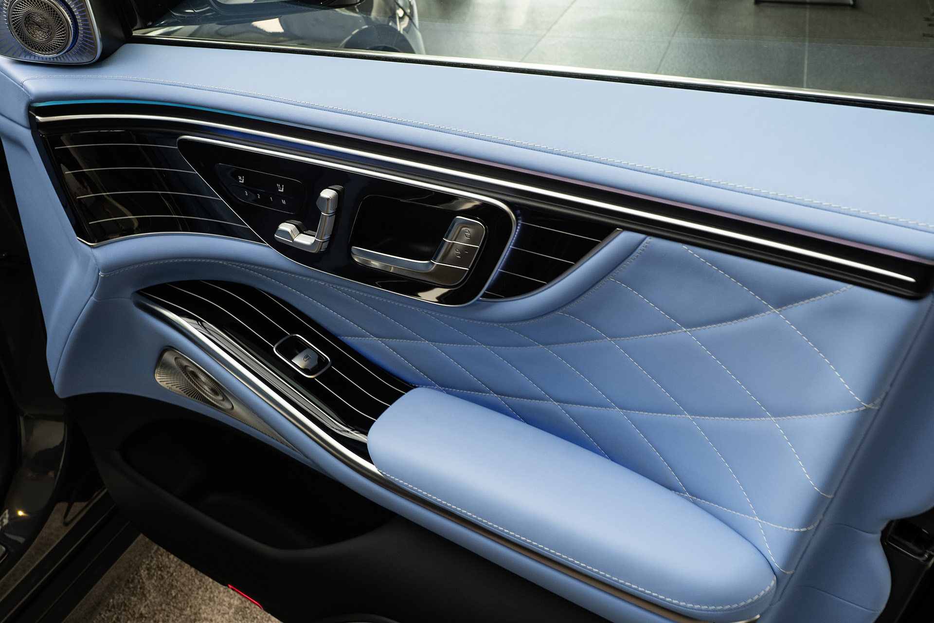 Presne z tohto programu som si pozrel aj prvý kus Triedy S na Slovensku. Zvonka sivá farba nepôsobí výrazne okázalo. Ale vnútorná bledá modrá mi vyrazila dych. Takéto prevedenie naozaj na mieru predstavuje určite príplatok väčší ako klasické čalúnenia Manufaktur z bežnejšej ponuky. Zachytil som niečo o cene 47-tisíc eur.