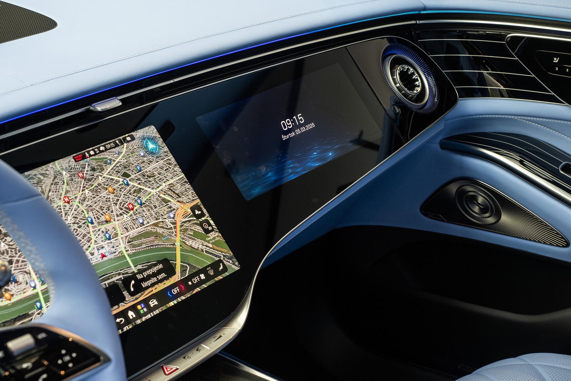 Významné zmeny sa odohrali aj v oblasti digitálnych technológií. Najnovšia generácia systému MBUX OS prináša viac funkcií, vyšší výkon a rozšírené možnosti online služieb. Dôležitou súčasťou sú aj aktualizácie softvéru na diaľku prostredníctvom OTA (over-the-air), ktoré umožňujú pridávať nové funkcie alebo vylepšovať existujúce systémy bez návštevy servisu. Dobre a teraz vážne, aj napriek exkluzívnym materiálom mi príde nová prístrojová doska trochu príliš predisplejovaná. Možno si len musím zvyknúť, ale zatiaľ som vo fáze, že som možno o trochu väčší fanúšik pôvodnej verzie pred faceliftom. A ak to chcete vedieť, tak toto displejové pole Superscreen je v základnej výbave.