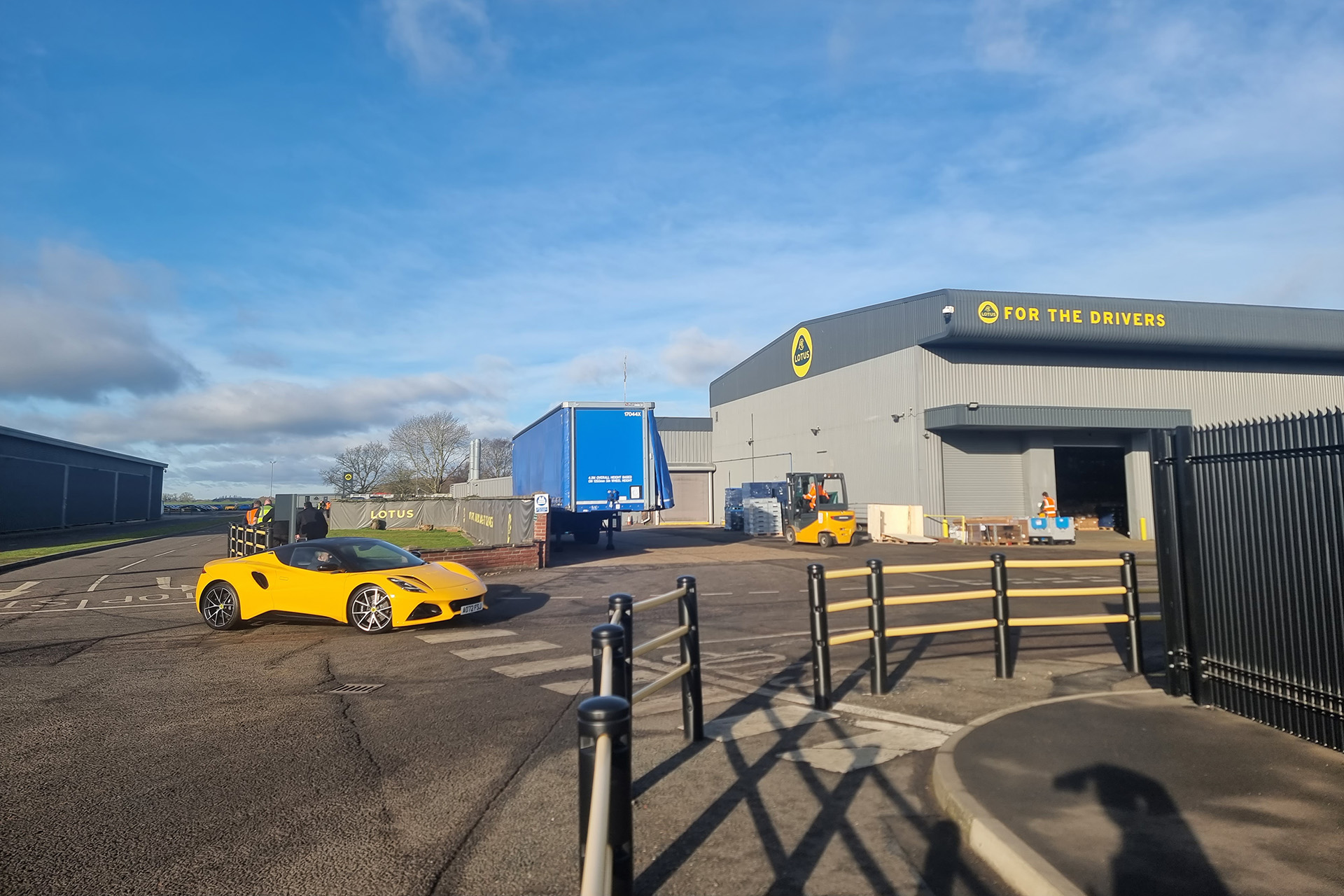 Pri bráne nás privíta veľmi príjemný vrátnik. Ukážeme mu lístky na prehliadku fabriky a vysvetľuje nám, aby sme sa autom odviezli na druhú stranu areálu a zaparkovali hneď vedľa testovacieho okruhu. Žiadne komplikované bezpečnostné opatrenia, ako sme zvyknutí napríklad z bratislavskej fabriky VW, či trnavského Peugeotu. Cítiť tu z každého dôveru a veľmi príjemnú atmosféru. Zaparkujeme a sme na parkovisku obklopení možno až stovkami úplne nových Emir čakajúcich na dopravu k zákazníkom. Vystupujeme z auta, víta nás náš dnešný sprievodca po fabrike. Slušne nás poprosí aby sme tu nerobili žiadne fotky. Žiadne odovzdanie telefónu do trezoru, stačí že nás upozorní a my to rešpektujeme. Máme krásny slnečný deň, autá okolo nás dnes nádherne žiaria a po priľahlom okruhu krúži testovacia Emira GT4 pričom jej zvuk sa ozýva po celom okolí.