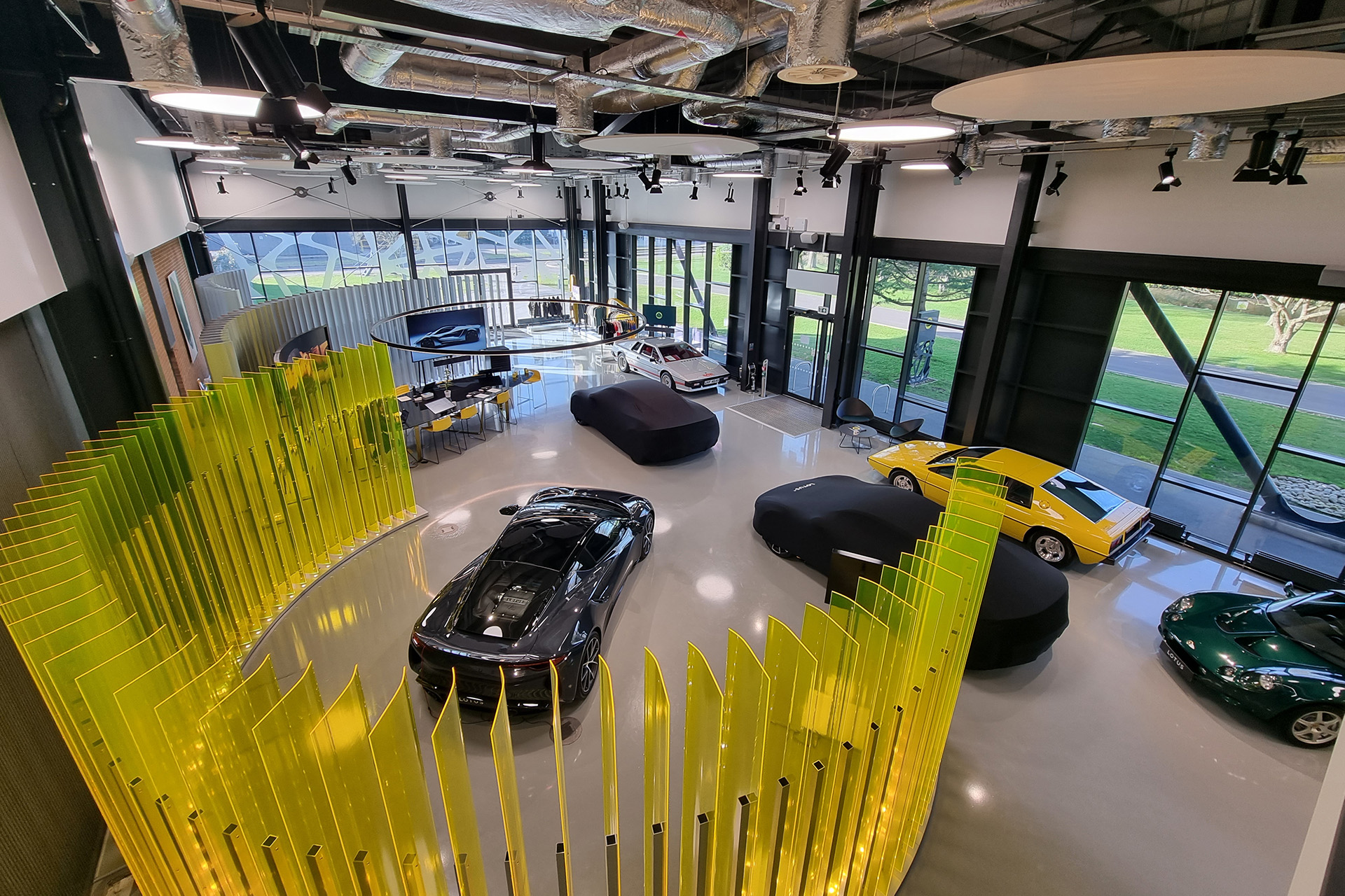 Na konci slepej cesty sa po ľavej strane nachádza nová výrobná hala. Po pravej strane, naopak miesto, kde sa udržujú pri živote klasické Lotusy – Classic Team Lotus. Tieto nestarnúce závodné legendy totiž ešte aj dnes stále jazdia rôzne preteky. Cez okno z obchodu na suveníry je vidno ako majú v dielni rozpracovaných niekoľko starších okruhových aut. Do našej prehliadky máme ešte chvíľu čas, tak si ešte poobzeráme vystavené modely autíčok a prelistujeme knižky mapujúce históriu značky.