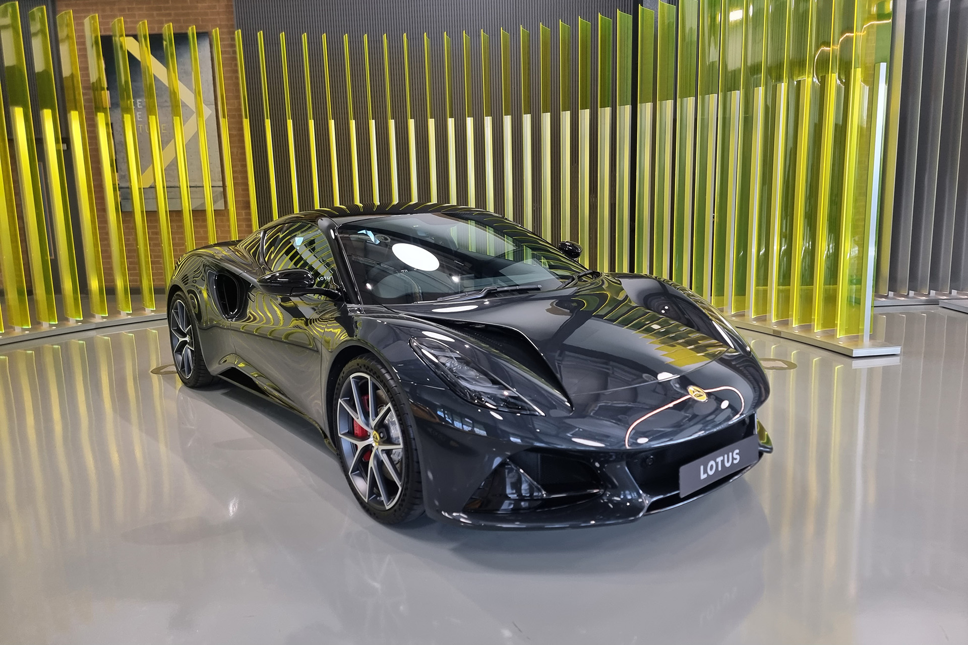 Po prejdení dielňou mi prišlo že tu je všade veľa ľudí. Každý z nich má presne svoje miesto a vie, čo má robiť. Výroba je výborne organizovaná a každý jeden krok má svoj presne stanovený čas, aby nebrzdil ten ďalší. Výsledkom je, že z výrobnej linky zíde nová Emira každých 29 minút. To je skoro polovičný čas ako tomu bolo ešte počas minulého roka pri rozbiehaní výroby. Súčasne sa dokončujú ešte autá, ktoré sa pre chýbajúce diely nedali dokončiť skôr. Podľa množstva áut, ktoré sme dnes videli vo výrobe, vyzerá že sa Lotus konečne rozbehol a jednotlivé kusy modelu Emira sa po počiatočnom omeškaní konečne začínajú dostávať ku svojim šťastným majiteľom. Aktuálne je stále vo výrobe Emira First Edition s extra výbavou a obmedzenými farbami. Tie sú ale dostatočne pestré a vidieť to aj pri pohľade do montážnej haly, alebo na parkovisko vonku. Žiarivá žltá, svetlomodrá, tmavočervená (možno až bordová), bledosivá metalíza, tmavozelená, ktorá na slnku mení svoj odtieň a tmavošedá. Postupne by sa k nim mala ešte pridať biela, svetlejší odtieň červenej a čierna. Tie si zatiaľ môžete skombinovať s rôznymi farbami brzdičov, striebornými, čiernymi alebo strieborno/čiernymi diskami diamant. Konfigurátor ešte umožňuje rovno z výroby objednať ku všetkým farbám karosérie čiernu strechu alebo podbehy. Rovnako vám dáva možnosť zvoliť, či máte chuť sa pochváliť cez číre sklo že máte za sedadlami ukrytý motor alebo ho zahalíte tmavým krycím sklom.