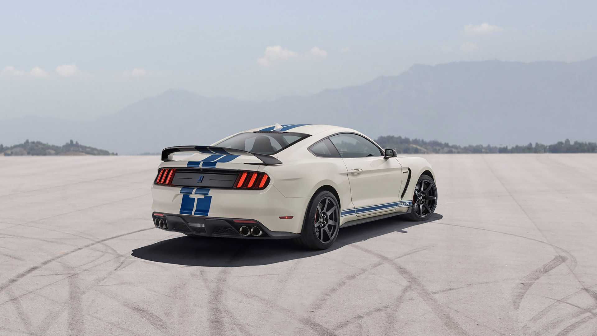 Zvonku je to jasná pocta modelu GT350 z roku 1965. Biely lak a modré pruhy. Názvy samotných farieb sú Wimbledon White a Guardsman Blue. Samozrejme nechýbajú znaky Shelby vpredu ani vzadu. Super je čierne krídlo, ani malé ale ani prehnane veľké. Agresívny look dotvárajú čierne prahy a disky kolies s masívnymi červenými brzdičmi. Taktiež predný nárazník dostal čierny lip. Exteriér je síce biely, vnútri ale vládne čierna temnota, ktorú prebíja iba červené prešívanie. Nie sú to žiadne ultra drastické zmeny podľa ktorých by aj laik ihneď spoznal na ulici túto edíciu, ale niekedy je to lepšie ako brutálny mix a prekombinovanosť všetkého čo prišlo pod ruku.