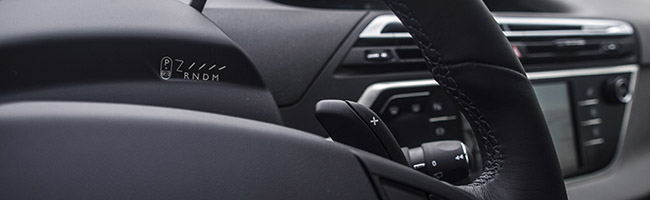Zaradenie jazdného režimu obstaráva Ego, rovnako ako CT v Piešťanoch malá páčka pod volantom, ešte menšia ako majú Mercedesy. Nemá však úplne pevne definované polohy, takže pri radení D občas skončíte až v manuálnom režime ovládanom pádlami pod volantom. Pri radení spätného chodu je pevnejšia poloha R. Naspäť do P prevodovku presuniete oblúkom vzad a hore. Dá sa na to rýchlo zvyknúť, ale aj tak ten manuálny režim občas spustíte.