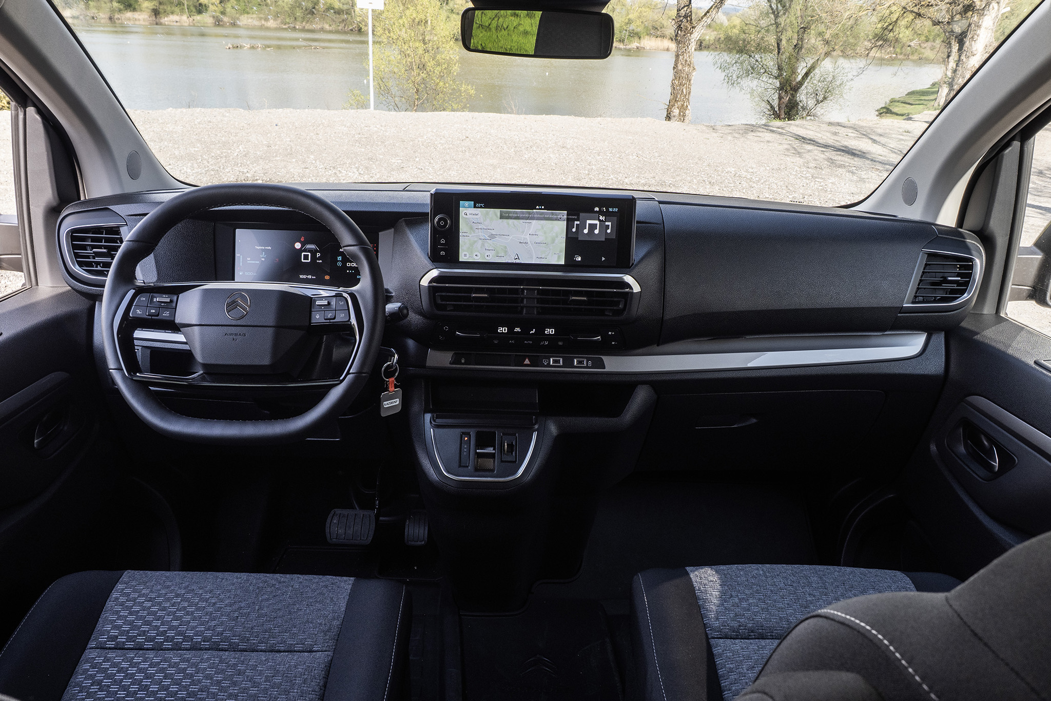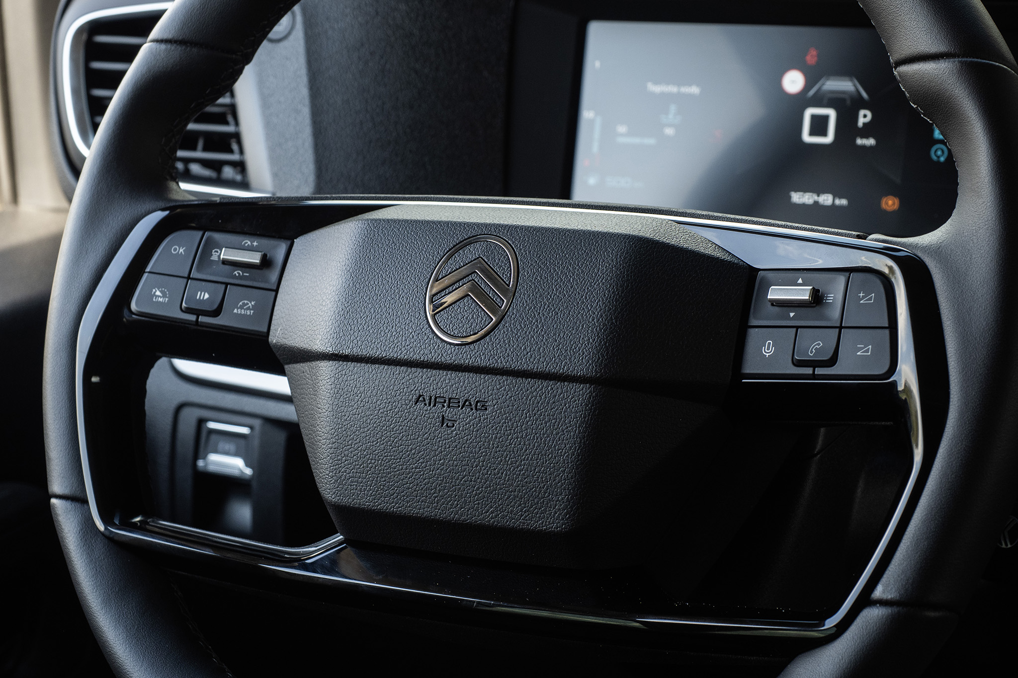 Volant ponúka netradične robustný tvar, ktorý trochu pripomenie staršie kamióny Volvo FH. Na ramenách sú ovládače audia aj adaptívneho tempomatu. Prístrojový štít sa ovláda tlačidlom vľavo pod volantom a palubný počítač tradične cez pravú páčku. Je to stará citroënovská škola, ktorú poznali už majitelia Xsary Picasso a aj predtým. Niektoré veci naozaj netreba meniť.