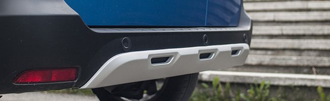 Zadná časť nie je úplne obvyklá. Kým konkurenti majú v portfóliu výklopné dvere, Dacia na takéto menej praktické zábavky kašle. Ponúka len dvojkrídle asymetrické vráta. Ale to nie je nič nové. Na Stepway je nový nárazník. Plastový kus, ako na lacných kusoch pridáva imitáciu ochranného plechu, ako je aj vpredu. Zaujímavosťou je, že Dacii stačia tri senzory na parkovanie miesto obvyklejších štyroch.