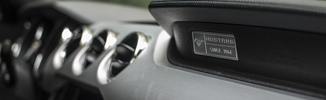 Oproti minulým generáciám je interiér výrazne kvalitnejšie a krajšie spracovaný. Konečne je súčasťou výbavy aj automatická klimatizácia. V minulých generáciách si ju nebolo možné objednať ani za príplatok. To bola trochu škoda, lebo hlavne vrcholové modely v úprave od Shelbyho s manuálnou klimatizáciou nepôsobili veľmi presvedčivo. Interiér v retro štýle už nie je tak lacno americký ako to bolo pri minulých etapách života modelu. Použité materiály sú kvalitné materiály, aj keď sa nájde pár menej podstatných plastov, na ktorých vo Forde už nemuseli šetriť.