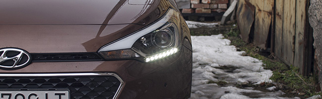 Keď sme už začali svetlá, tie nie sú ani LED, ani xenónové, ale využívajú na halogén šošovku. Jediné LED, ktoré i20 využíva vpredu sú na denné svietenie a na rozžiarenie plochy pri kapote. Elegancii pridáva aj hnedá farba.