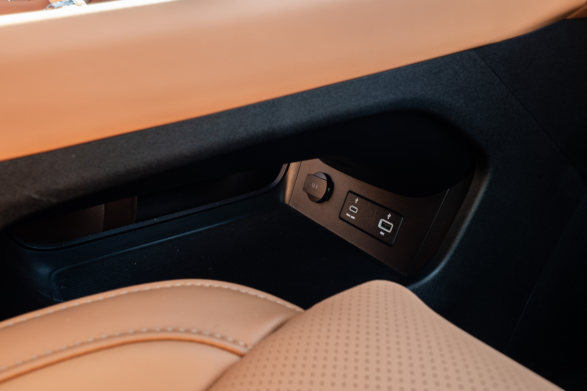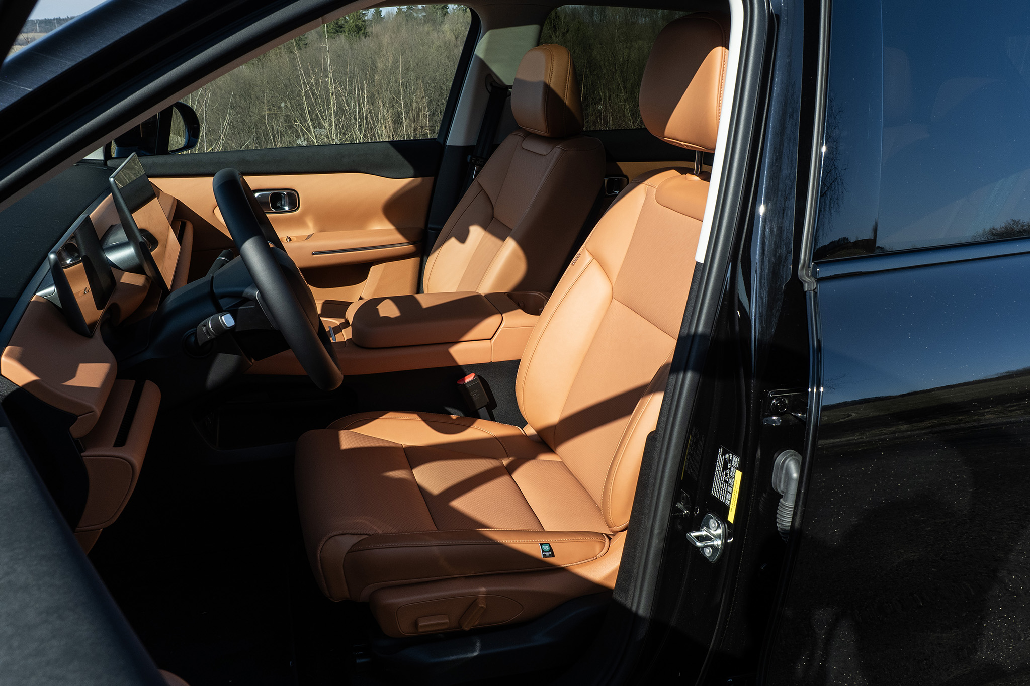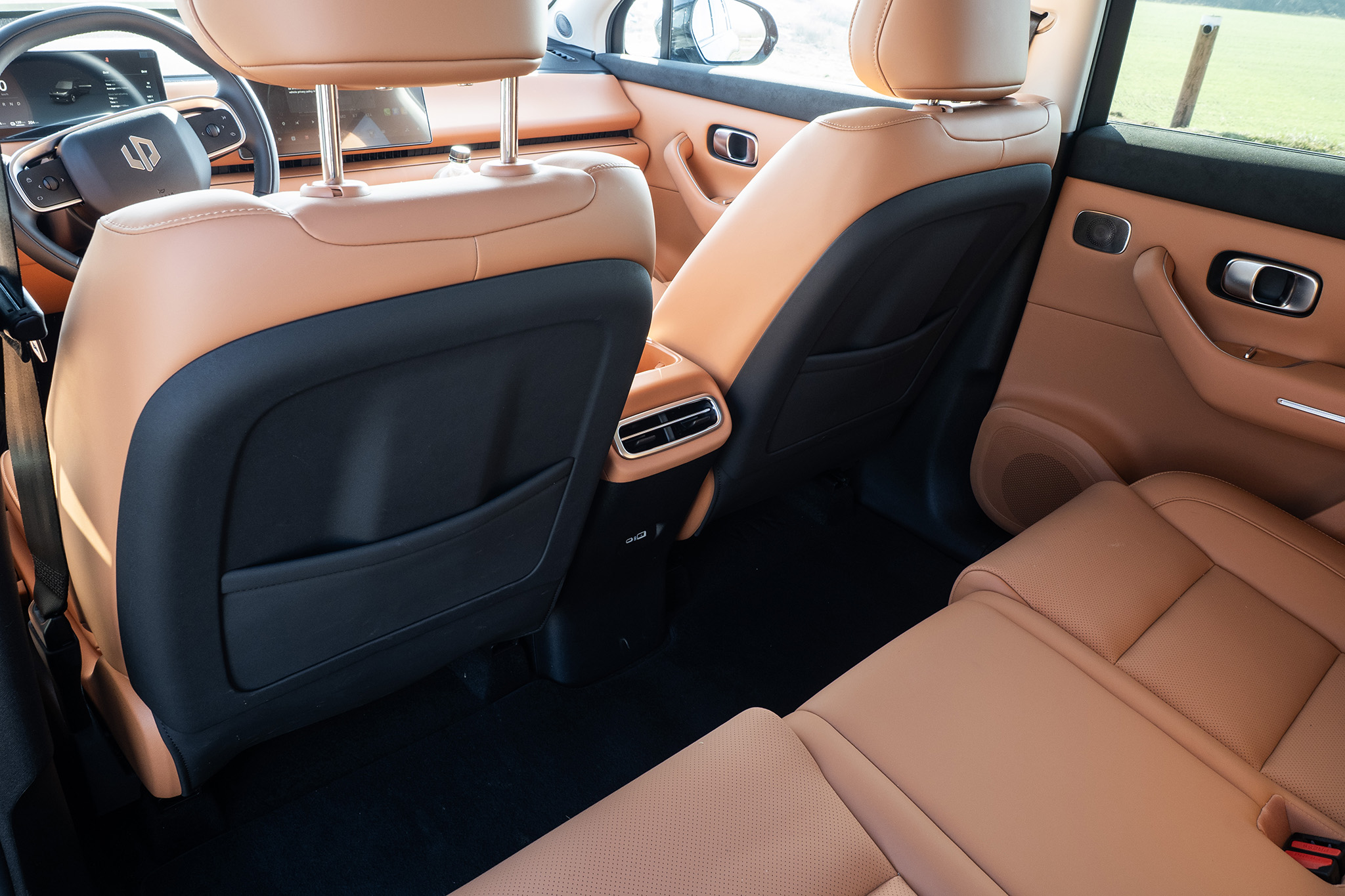 Predná časť je ale úplne extrémna. Oranžovo-hnedá Camel Brown farba dokazuje, že výrazné farby by mali oživiť už tak dostatočne presvetlený interiér. Toto je rozhodne lepšia alternatíva ako čierna. Vyzerá aj honosne a sedačky sú reálne príjemné, dokonca s ventiláciu a vyhrievaným. Práve kvôli tomuto sa oplatí vybrať si výbavu Design, čiže ten vyšší stupeň, ktorý má prvky nevyhnutné na fungovanie v našich končinách.