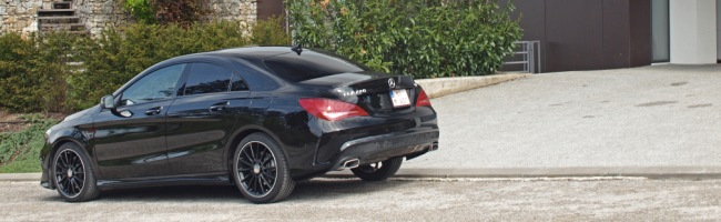 „Hneď ako som dostal kľúčiky od nového prírastku do rodiny s hviezdou rozmýšľal som nad tým, čím by auto mohlo byť výnimočné. Veď je postavené na základoch triedy A. Prvý pohľad ma presvedčil, že na ňom niečo bude, a nie málo. Predná časť sa ponáša na malý hatchback, ale už od predného skla akoby to bolo iné auto. Rovnako ako strecha jemne stúpa aj jemne klesá až ku kufru, podobnému tomu na väčšom CLS. Toto auto by sa dalo obdivovať zvonka veľmi dlho. Pre mňa bola kontroverznou len montáž AMG balíka, ktorý by som asi nevoli. S ním CLA vyzerá, akoby malo aspoň milión koní a pri prvom zošliapnutí plynu by spôsobilo opačnú rotáciu zeme. Toľko agresie spredu nie je vidno hocikedy. Ja by som tak skôr volil elegantnejší, sériový výzor. V prípade testovaného auta drsne pôsobila aj celočierna farba. Disky AMG s čiernym stredom, čierna metalíza na karosérii a aj zatemnené okná pridávali na efekte pre okoloidúcich.