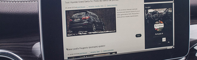 Keď sme načali to audio, tak pokračujeme. Okrem klasického príjmu signálu AM/FM máte samozrejme aj CD s možnosťou prehrávania MP3. Pri niektorých autách by to bolo asi všetko. Ale tu nie. Ďalej môžete využiť aj SD kartu, či dve USB, alebo vstavanú mediálnu banku s kapacitou 10 GB. USBčka môžete mať zapojené aj naraz a prehadzovať medzi nimi je úplne jednoduché. Command by dokonca zvládol aj video, ale mkv mu akosi nešli. Len zvuk sa podaril. Skúsili sme aj internetový prehliadač a v galérii môžete nájsť fotku stránky autogrip.sk načítanej na displeji.