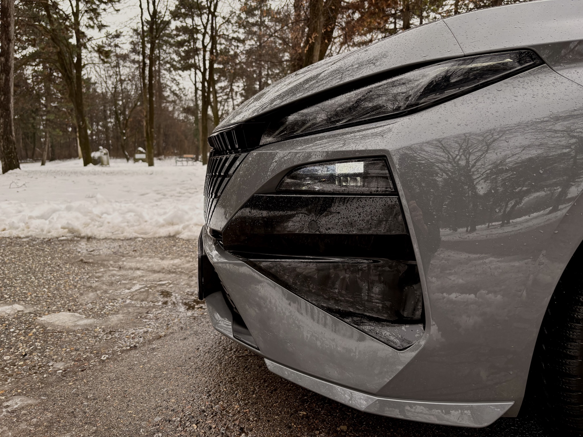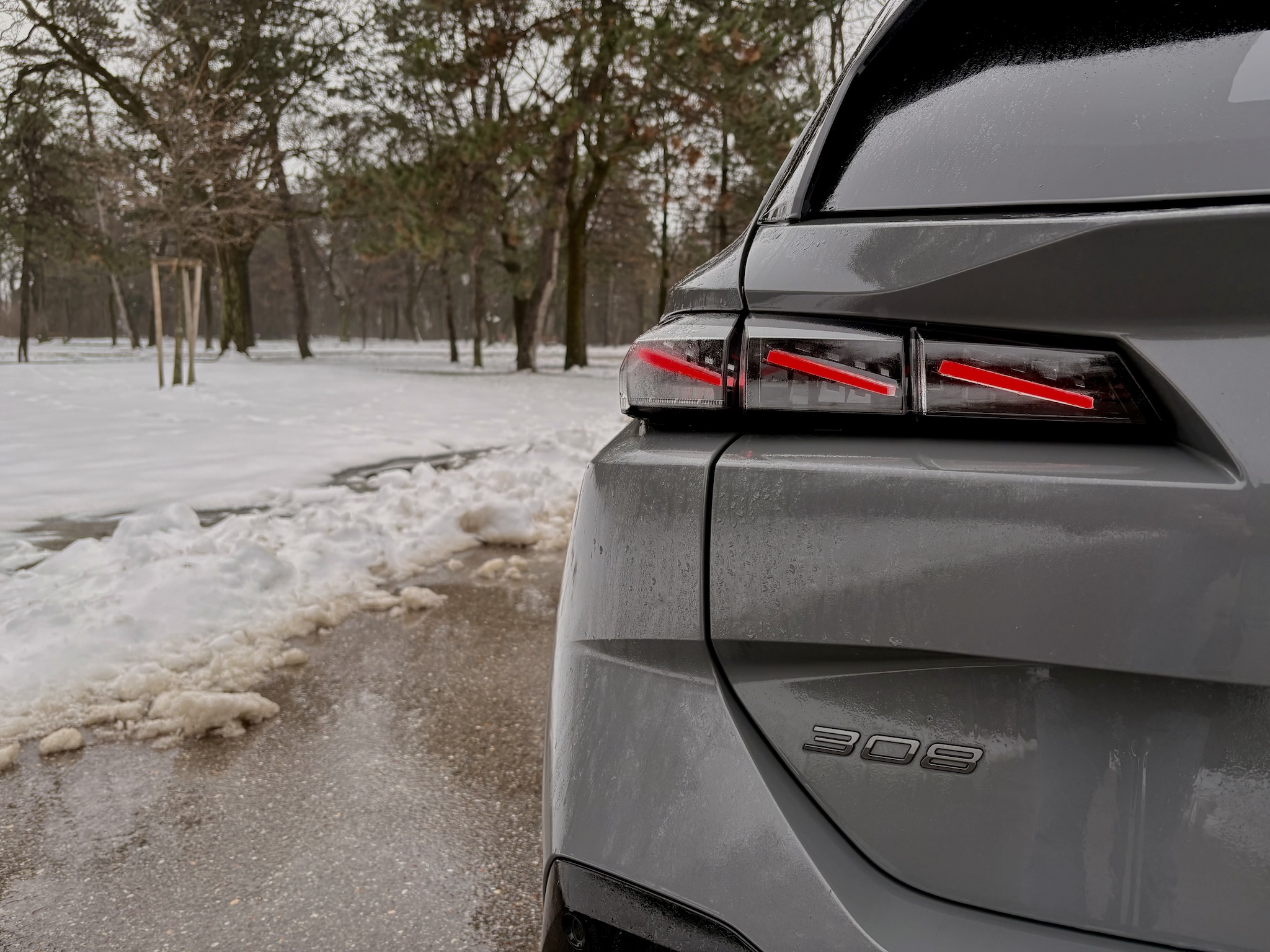 Základné kontúry auta sa žiadno výrazne nezmenili. A načo by aj, 308 stále vyzerá moderne a veľmi sviežo, za čo môže nízka prikrčená karoséria. Najväčšie zmeny si všimnete na prednej maske, kde po bokoch už absentujú typicky úzke zvislé pásy svetiel. Nanmiesto nich sú po stranách ešte väčšie otvory a tiež mriežka chladiča je iná. Taktiež je osvetlené aj nové logo. Kým stará maska bola tvorená malými strebornými elementami, tá nová prichádza so zvislými líniami a vrchnou, úzkou časťou prepojenou so svetlami. Tieto nové a výkonné Matrix LED majú podpis s tromi svetelnými pásmi a zatmavenú optiku. Hodnotíme to tak, že nová maska je vďaka otvorom zároveň ešte dynamickejšia ale aj uhladneješia a akási viac integrovaná a harmonickejšie zladená. Zboku nezbadáte žiadne zmeny, rovnako ani vzadu sa nič významne nemení. Tmavá optika s troma svetelnými linkami je stále moderná. Auto sme mali k dispoziíci v sivej farbe Selenium, ktorá pôsobí decentne a zároveň aj trochu tajomne, čo k dynamicky ladenej karosérií skvelo pasuje. Nový je dizajn 18″ kolies, ktoré kombinujú čiernu a striebornú. Vyzerajú vynikajúco, len pozor pri parkovaní pri obrubníkoch. Už od predstavenia tvrdíme, že Peugeot 308, či kombi alebo hatrchback, patria medzi tie najlepšie vyzerajúce auta vo svojej triede a facelift na tom nič nemení, iba v rozumnej miere updatuje osvedčené a fungujúce.