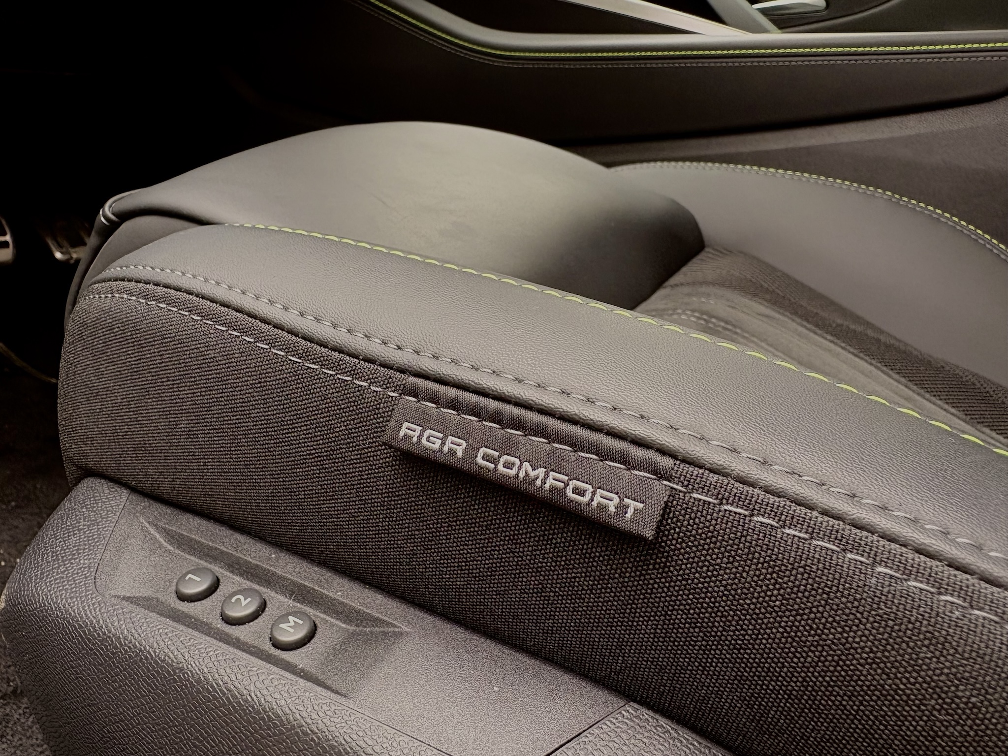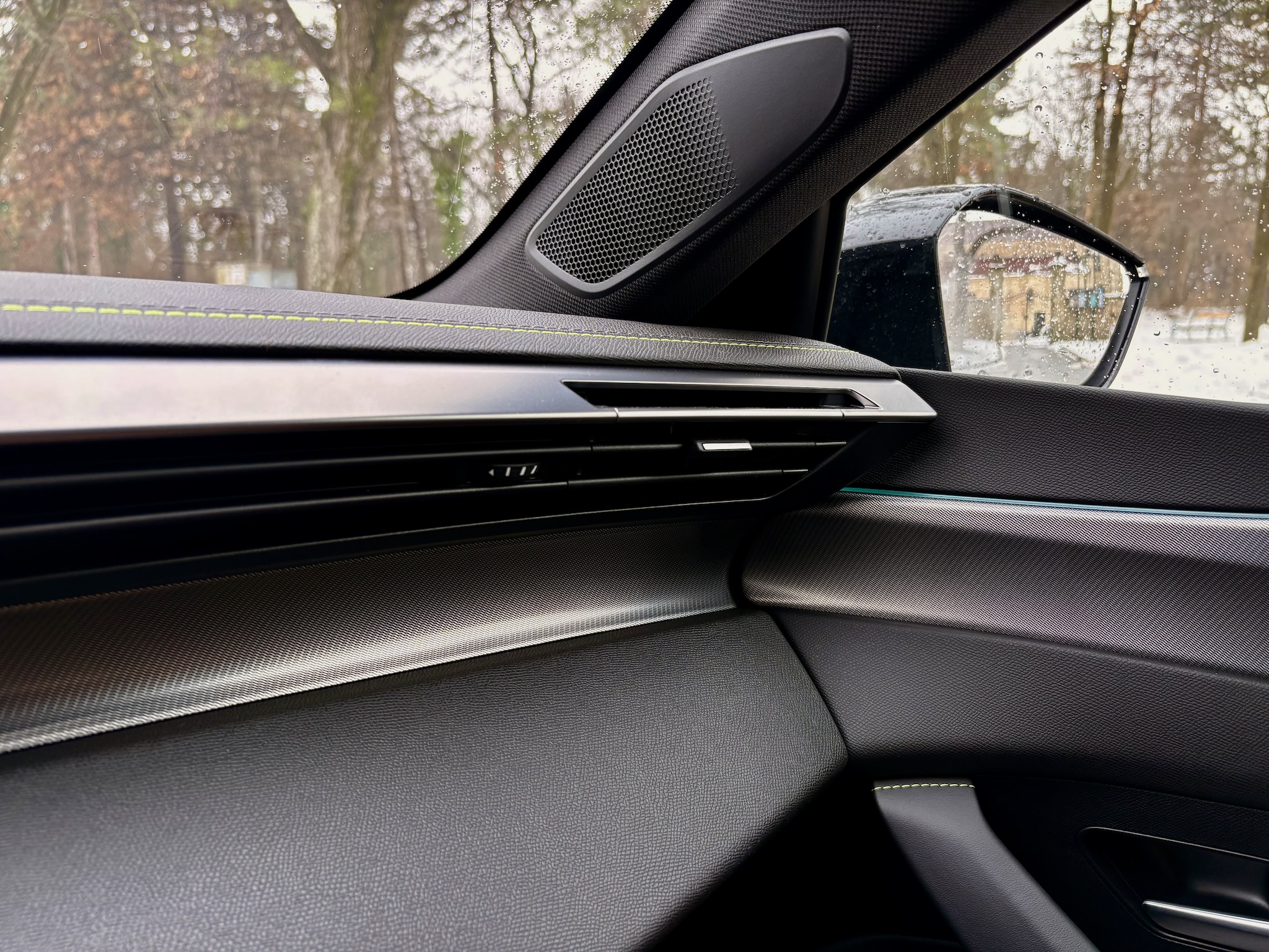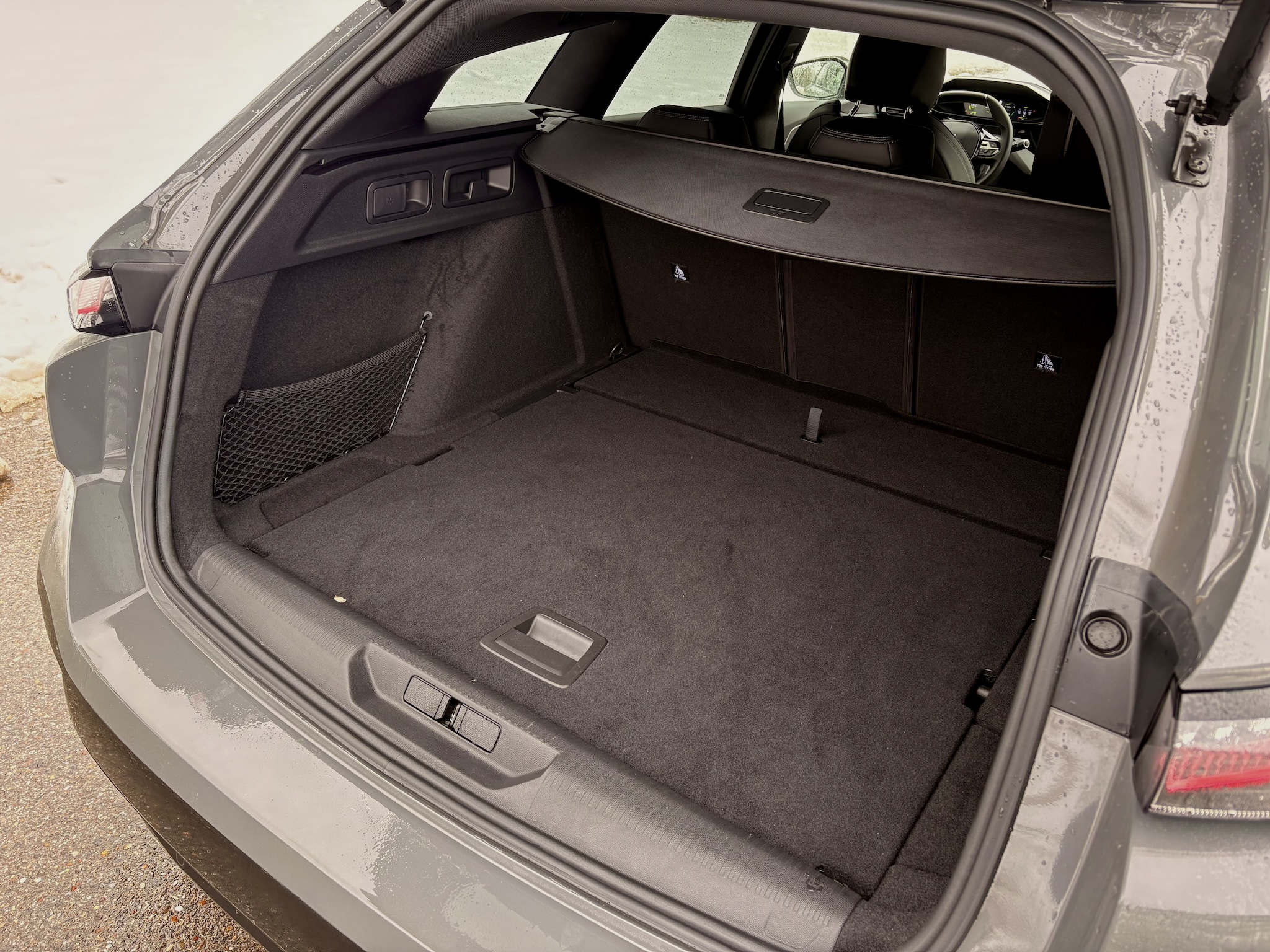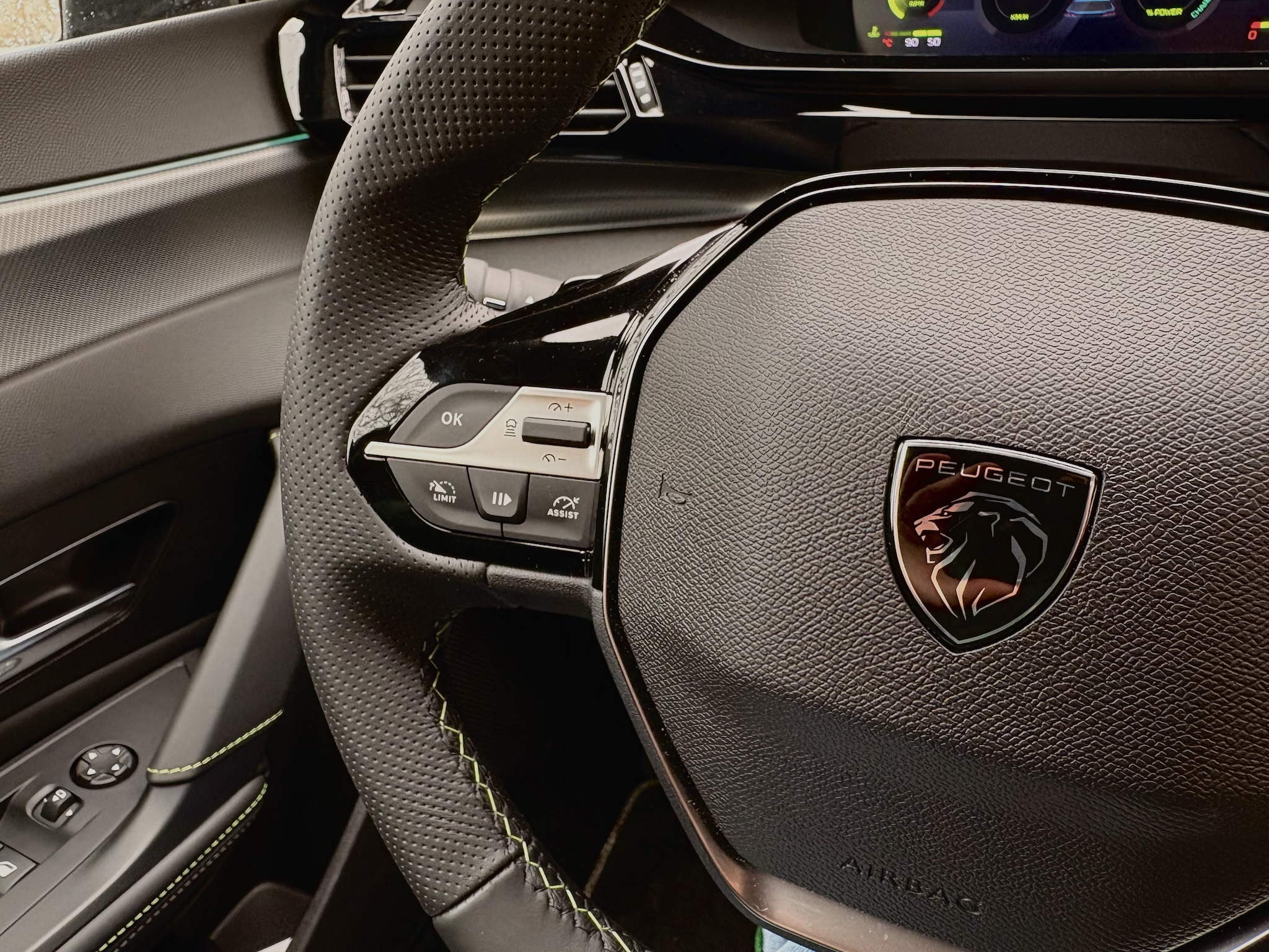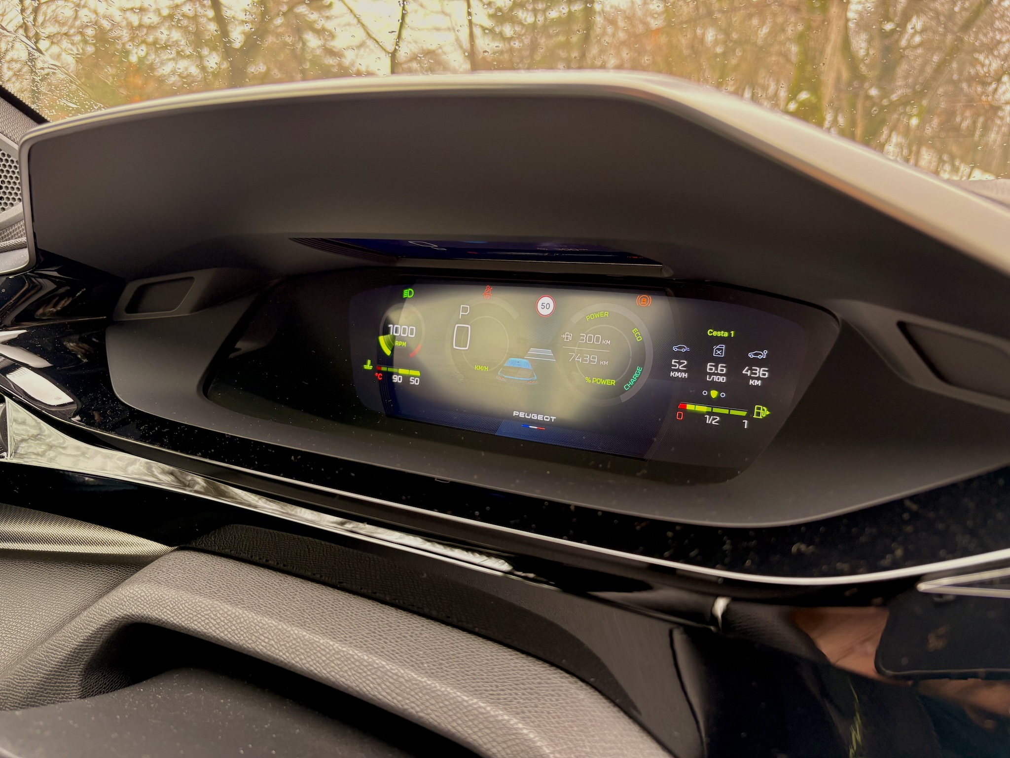 V kabíne si na prvý pohľad žiadne zmeny nevšimente, dôraz sa tu kládol skôr na vylepšenia materiálov a technológií. Tak napríklad sedadlá majú ortopedický certifikát AGR a nastaviteľnú prednú časť sedáku. Sedí sa v nich výborne, čo sa tuhosti aj bočného vedenia týka a aj subtílnejším postavám poskytnú veľmi slušnú oporu. Materiálový dojem je tak celkovo výborný, plasty na najviach exponovaných a vidteľných miestach sú mäkké a kvalitné. Posed je nízky a športový, s tradične malým dvojramenným vyhrievaným volantom a i-Cockpit architektúrou reprezentovanou dvojicou 10″ displejov. Oba displeje majú decentú grafiku a svižné reakcie, infotainment má aj vstavanú navigáciu a samozrejme parkovacie kamery. Ovládanie je rýchle, na prvý pocit je ovládanie možno trochu menej prehľadné ale zvyknúť sa dá veľmi rýchlo. Naviac, 308 má programovateľné digitálne tlačidlá i-Toggles, kde si viete presne podľa svojich preferencií navoliť čo nimi chcete ovládať. Toto je veľmi užitočná pomôcka a dovolíme si tvrdiť, že dôstojná a v mnohých ohľadoch aj lepšia alternatíva k kardvérovým ovládačom. Smartfón nabijete bezdrôtovo, USB porty sú C a prevodovka má malú nenápadnú páčku zarovnanú do stredového tunelu. Ten má okrem iného aj zaťahovaciu roletku a pod ňou úložný priestor na nápoje a tiež otváraciu lakťovku. Prešívanie zelenou niťou je u nových Peugeotov už tak trochu klasika ale vôbec nevadí ani nepôsobí nepatrične, napriek tomu že ide o výrazný prvok, Nájdeme ho na volante, palubke aj sedadlách, ktoré sú potiahnuté eko verziou alcantary. Priestoro je 308 SW skôr priemerom a bežným zástupcom triedy, ktorý nevyniká pozitívne ani negatívne. Vpredu je miesta samozrejme dosť, kritickejšie to býva vzadu a v prípade 308 je to pre dve osoby úplne v norme, na kolená bez problémov, na hlavy trochu horšie, ak tu budú sedieť extra vysoké osoby. To je logické, keďže dynamicky nízka silueta karoséria sa vnútri musí prejaviť. Do kufra ale zbalíte solídnych 598 litrov.