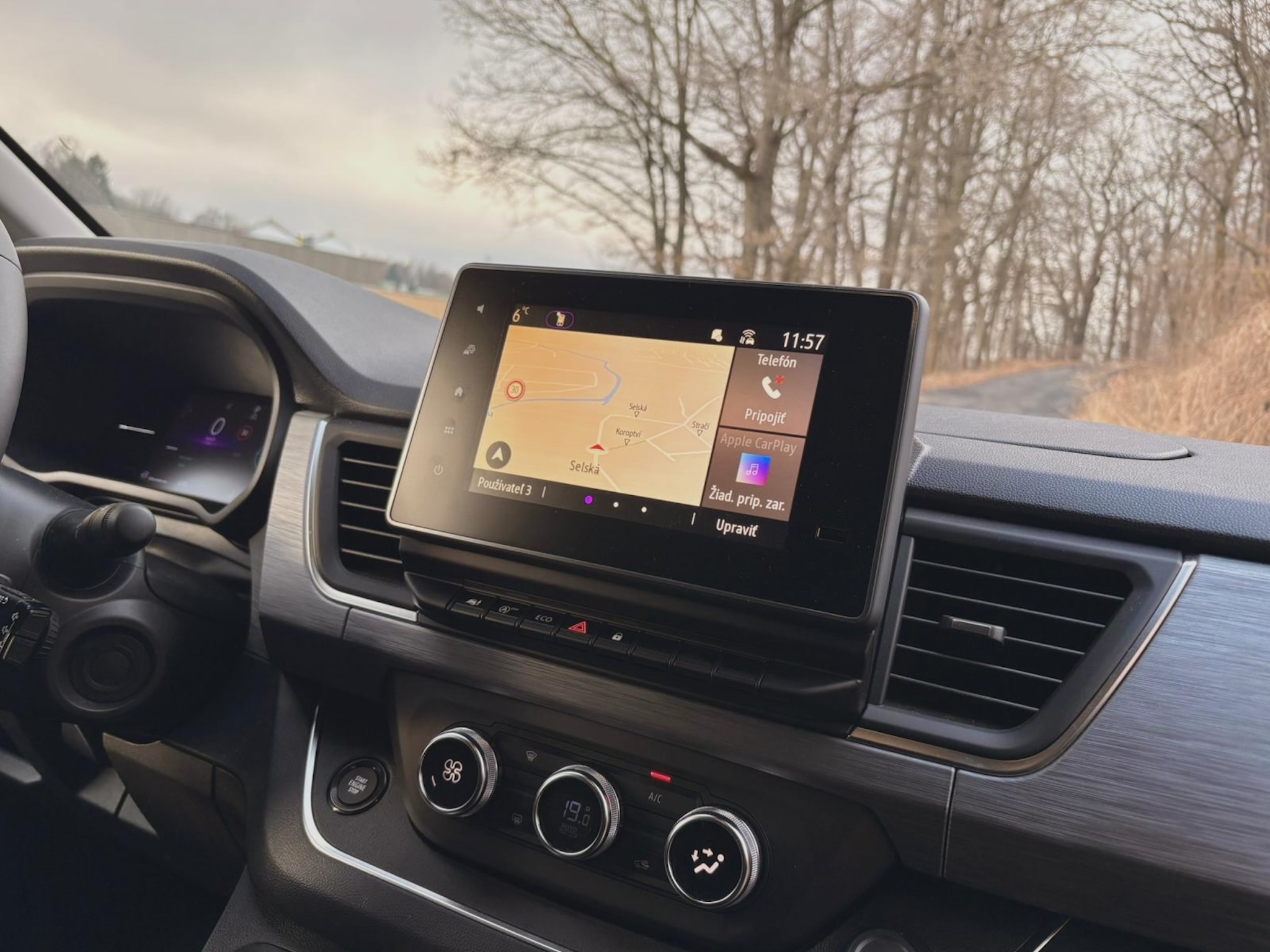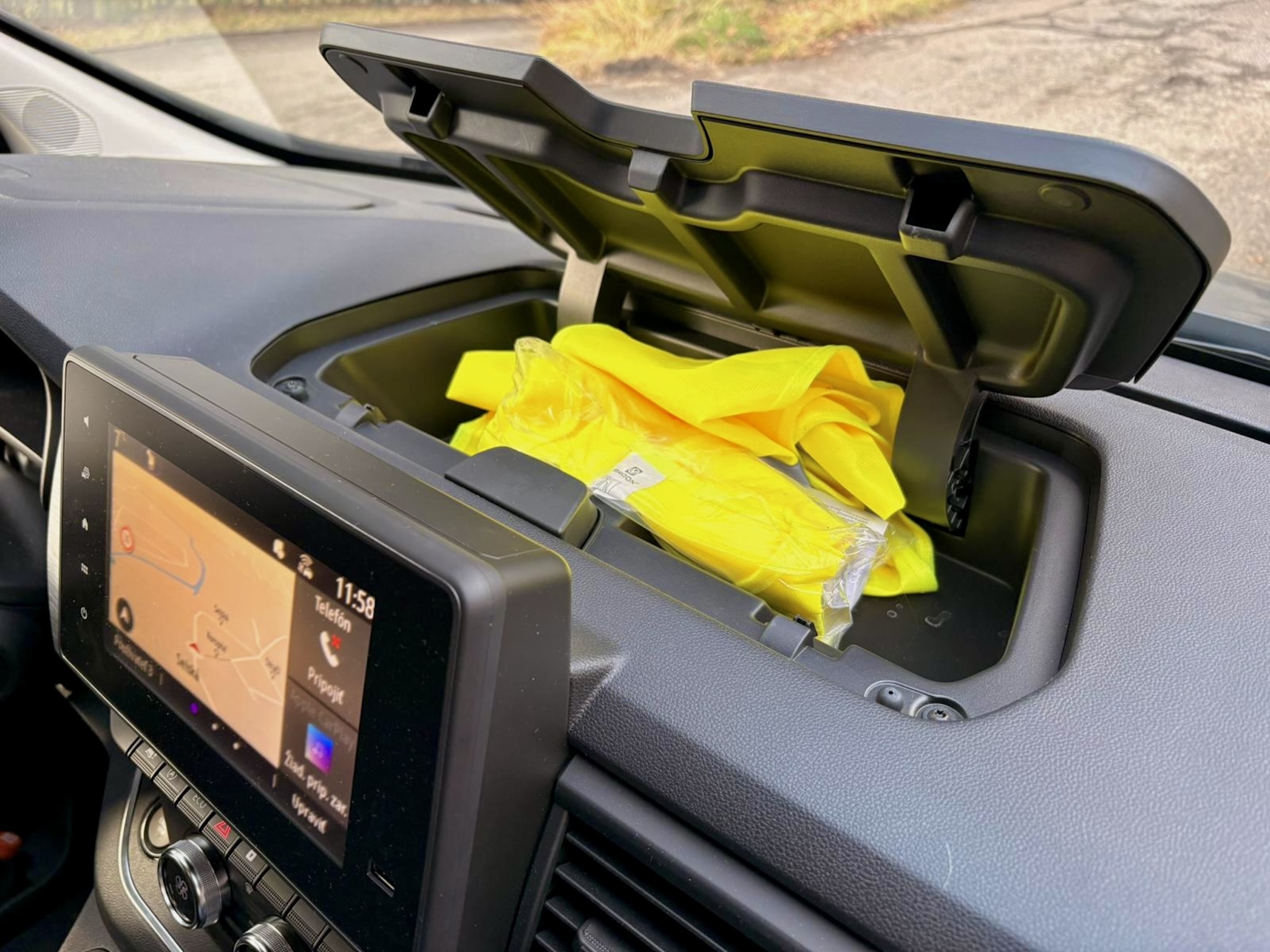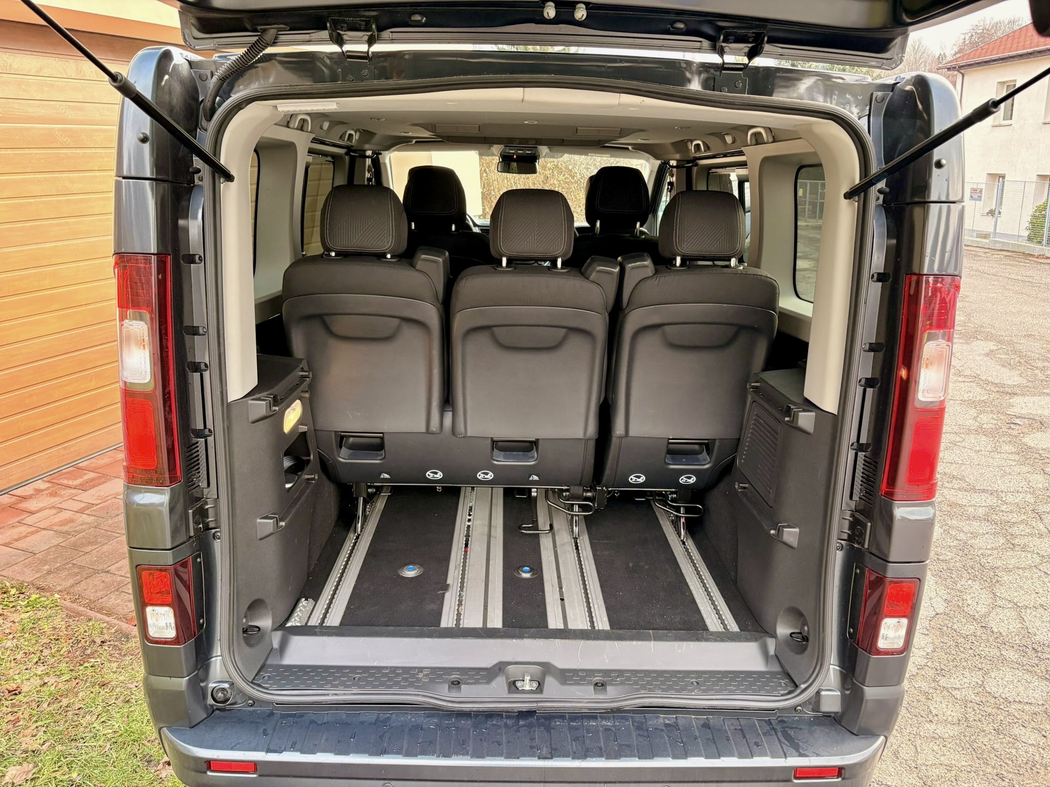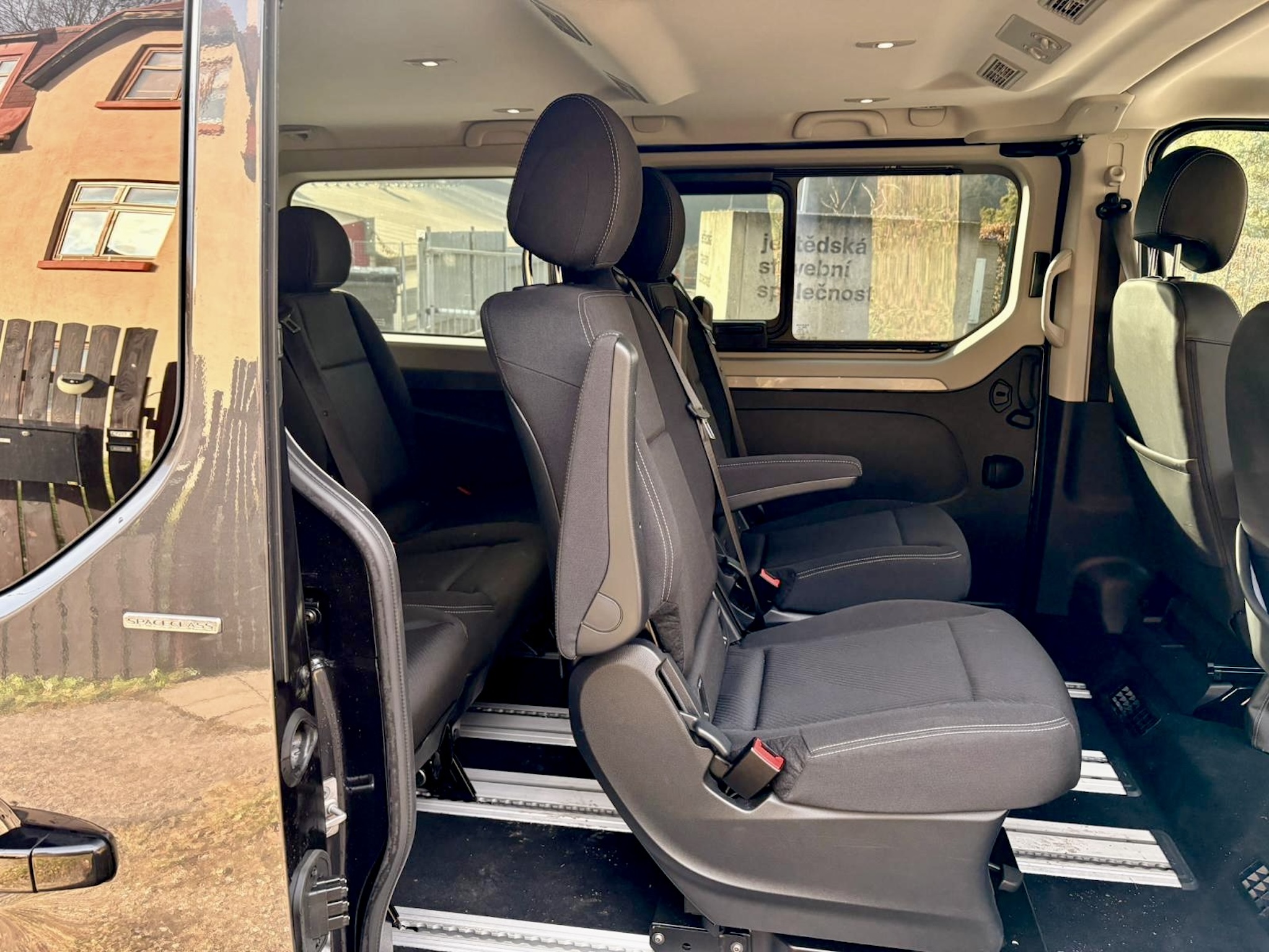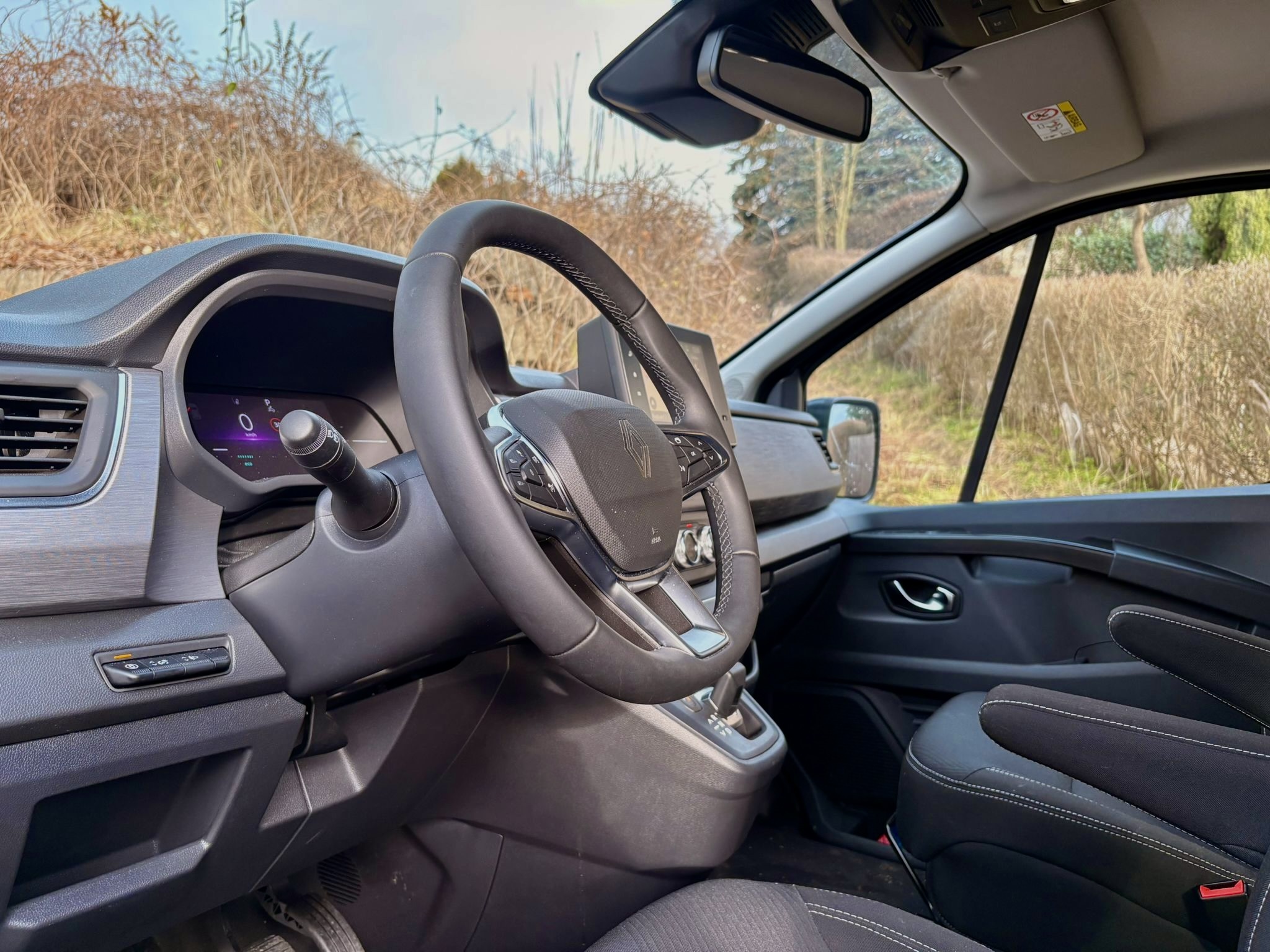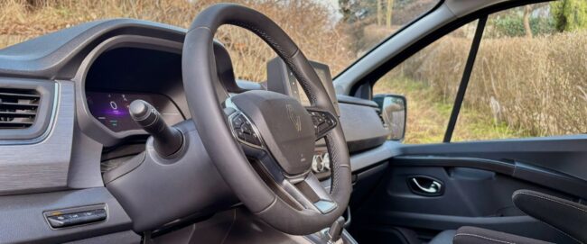 Kabína má sedem miest a vďaka posuvným dverám z oboch strán je nastupovanie veľmi ľahké a príjemné, rovnako tak vpredu vám pomôže praktický schodík. Základná architektúra a rysy palubnej dosky nevedia zaprieť dodávkový pôvod, avšak samotná výbava a komfort sú na veľmi slušnej úrovni. Malý nenápadný volič automatickej prevodovky sa dostal aj sem, sedadlá sú pohodlné látkové s lakťovými opierkami a tiež volant je rovnaký ako v osobákoch. Dokonca aj prístrojový štít je plne digitálny a prevzatý z osobných Renaultov, čo znamená dôstojnú grafiku aj prehľadnosť. Zub času je trochu vidno na 8″ displeji infotainmentu, ktorým je starší Easy Link. Graficky ani reakciami neohúri, svoju prácu však odvádza spoľahlivo a ponúka aj vstavanú navigáciu a parkovacie kamery, ktoré sú v takomto veľkom aute nevyhnutné. Smartfón k nemu, žiaľ, pripojíte iba káblom. Fyzické tlačidlá má ovládanie automatickej klimatizácie či asistenčné systémy a dokonca aj ručná brzda je mechanická. Konzervatívnym vodičom, ktorí vyznávajú skôr analógový starý svet, sa bude kabína veľmi páčiť. Palubná doska je obložená tmavou imitáciou dreva a plasty sú po väčšine tvrdšie, ale aj tak je pocit z kabíny príjemný aj na dlhších cestách. Môže za to aj dostatok odkladacích priestorov, ako napríklad schránka na vrchu palubnej dosky či veľký šuflík pred spolujazdcom. V druhom rade sú dve otočné sedadlá s lakťovými opierkami, v tom treťom tri a tak je možné priestor rôzne meniť, avšak samotná maniluplácia so sedlami v prípade vyberania je trochu ťažkopádnejšia. Sedadlá sú samozrejme ukotvené v koľajniciach, čo ešte viac umocňuje možnosti pracovať s priestorom. Každopádne, v hociakej možnej konfigurácií ponúka toto auto mieru pristoru, o akej môžou cestujúci v osobákoch iba snívať. Do kufra naložíte od 1000 až do 3200 litrov v závislosti na usporiadaní či úplnom odstránení sedadiel, čo samozrejme z Traficu robí takmer plnohodnotnú úžitkovú dodávku.