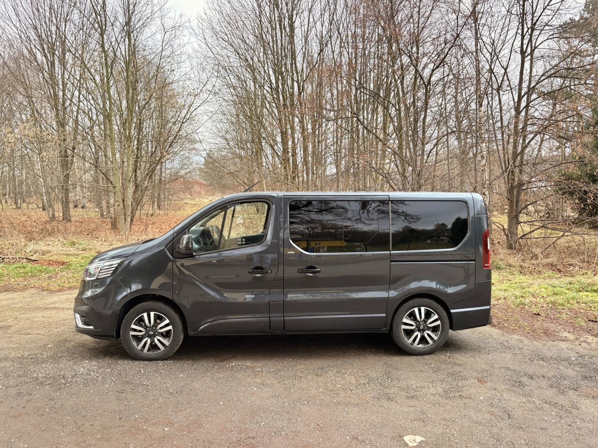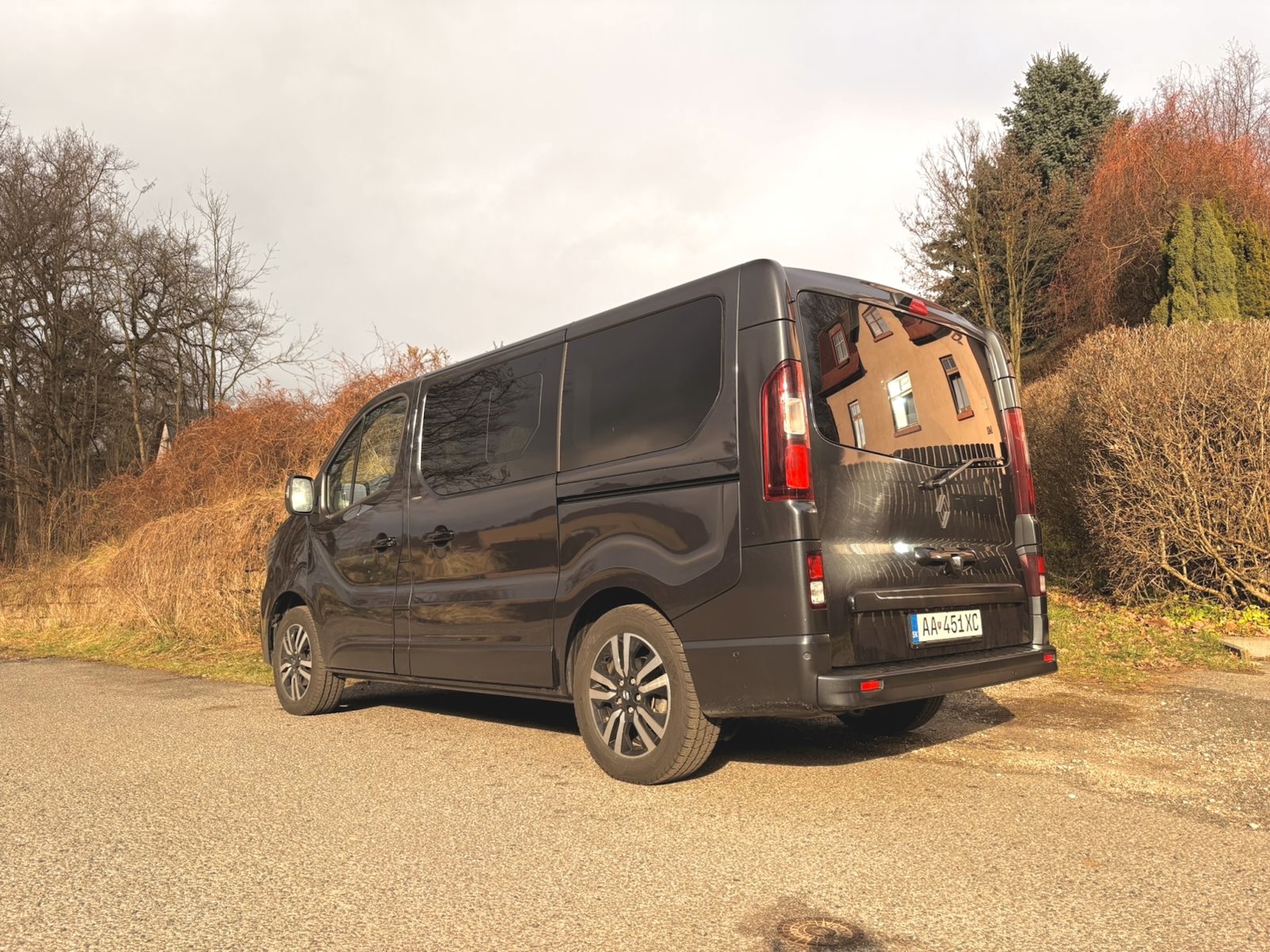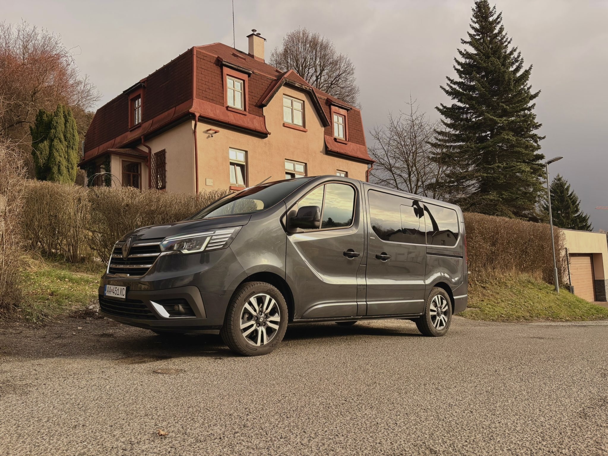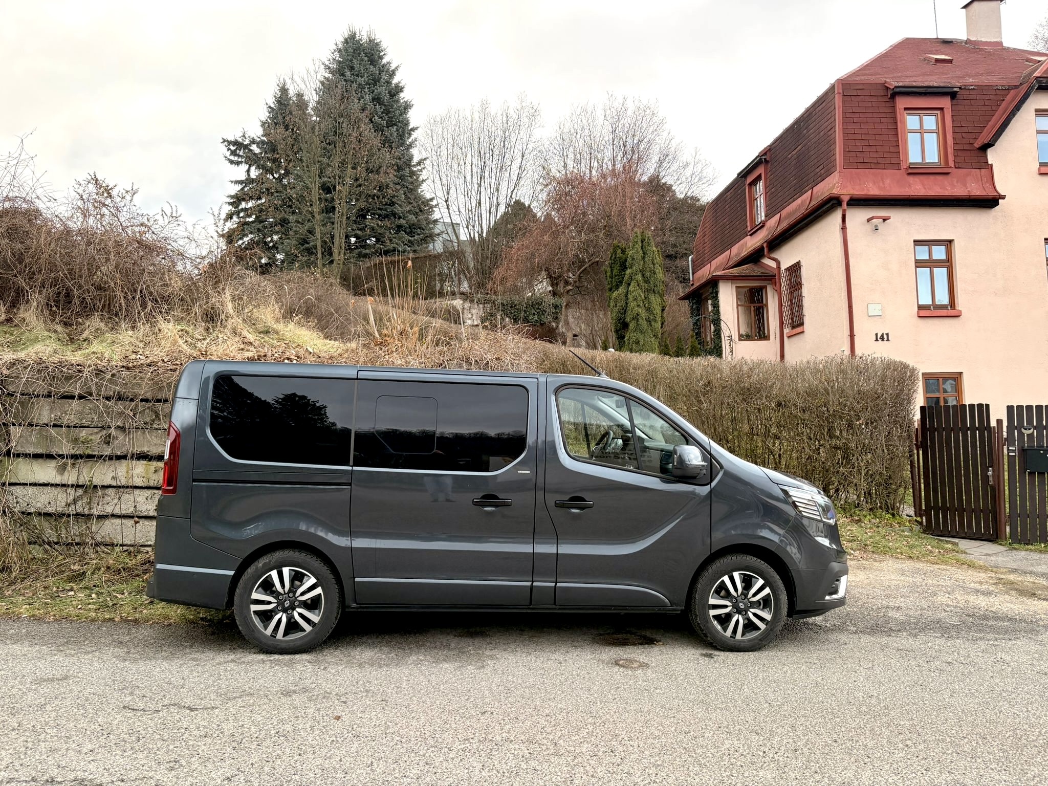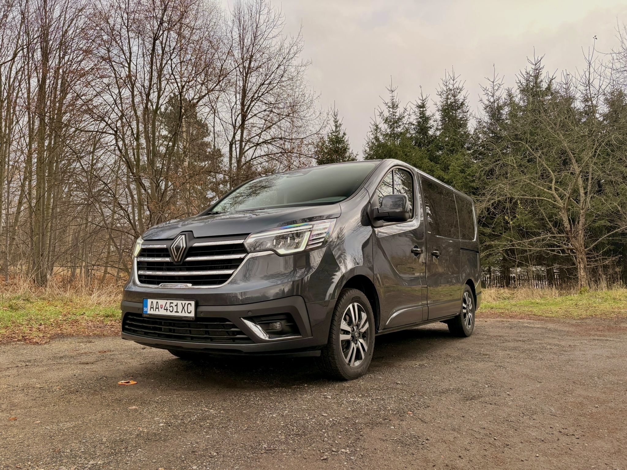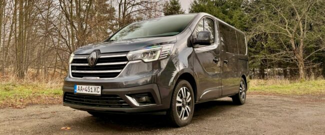 V súčasnej podobe je Renault Trafic na trhu od roku 2015, čo je už pomerne dlhá doba a preto sú jeho tvary dobre známe. Pomohol však facelift prednej masky, ktorá priniesila aj LED svetlá, čo je v dnešnej dobe skoro nevyhnutné. My sme mali auto v kratšej verzii s dĺžkou 5080mm v elegantnej sivej farbe a na 17″ hliníkových diskoch. Aj vďaka odtienu karosérie, chrómovanej maske a zatmaveným oknám pôsobí civilným a osobným dojmom a čiastočne dokáže kamuflovať svoj dodávkový pôvod. Na oboch stranách sme mali posuvné dvere za príplatok, čo pri takomto aute je na nezaplatenie. Zadné dvere sú klasické výklopné, skutočne obrovské a ťažké, na čo si treba zvykať, pretože potrebujú silu a dostatok priestoru. Jasné, Trafic nepôsobí tak moderne ako nemecká konkurencia, boduje však napríklad aj cenou a extrémne dobrým pomerom hodnoty za peniaze, čo sa nemení ani po rokoch.