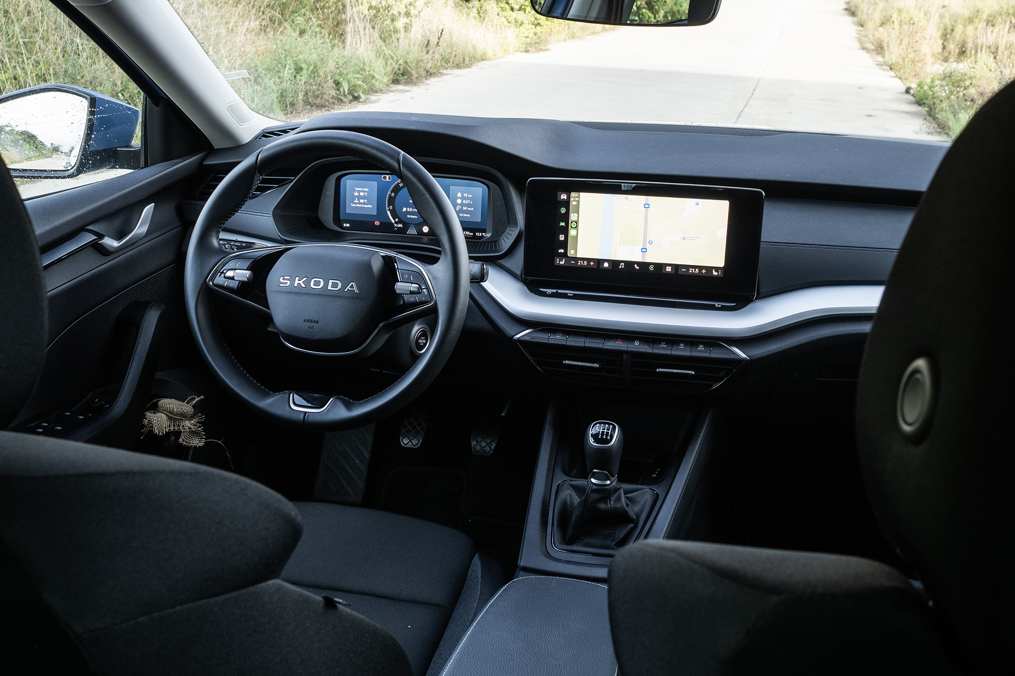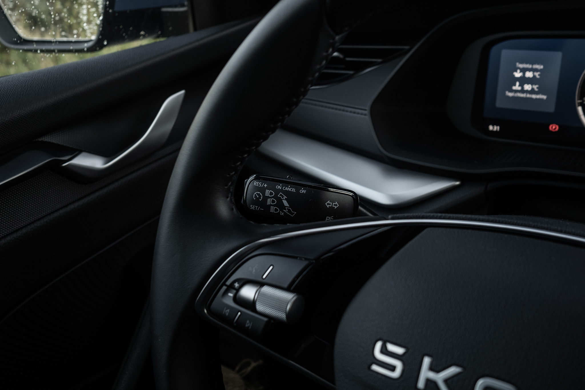 Avšak vpredu je to auto, ktoré je použiteľné v akomkoľvek aspekte. Možno mi chýba adaptívny tempomat, možno mi chýba bezkľúčové odomykanie a zamykanie, ale štartovanie tlačidlom na stĺpiku volantu je, volant je príjemný s dvomi lúčmi. Sú na ňom tradičné tlačidlá, displej nie je príliš veľký a podporuje bezdrôtové Apple CarPlay a Android Auto. Prečo to spomínam? Lebo táto verzia nemá navigáciu. Nemá ani bezdrôtové nabíjanie, čo za problém nepovažujem, lebo niektoré mobily sa vedia prehrievať, ak podložka nie je chladená.