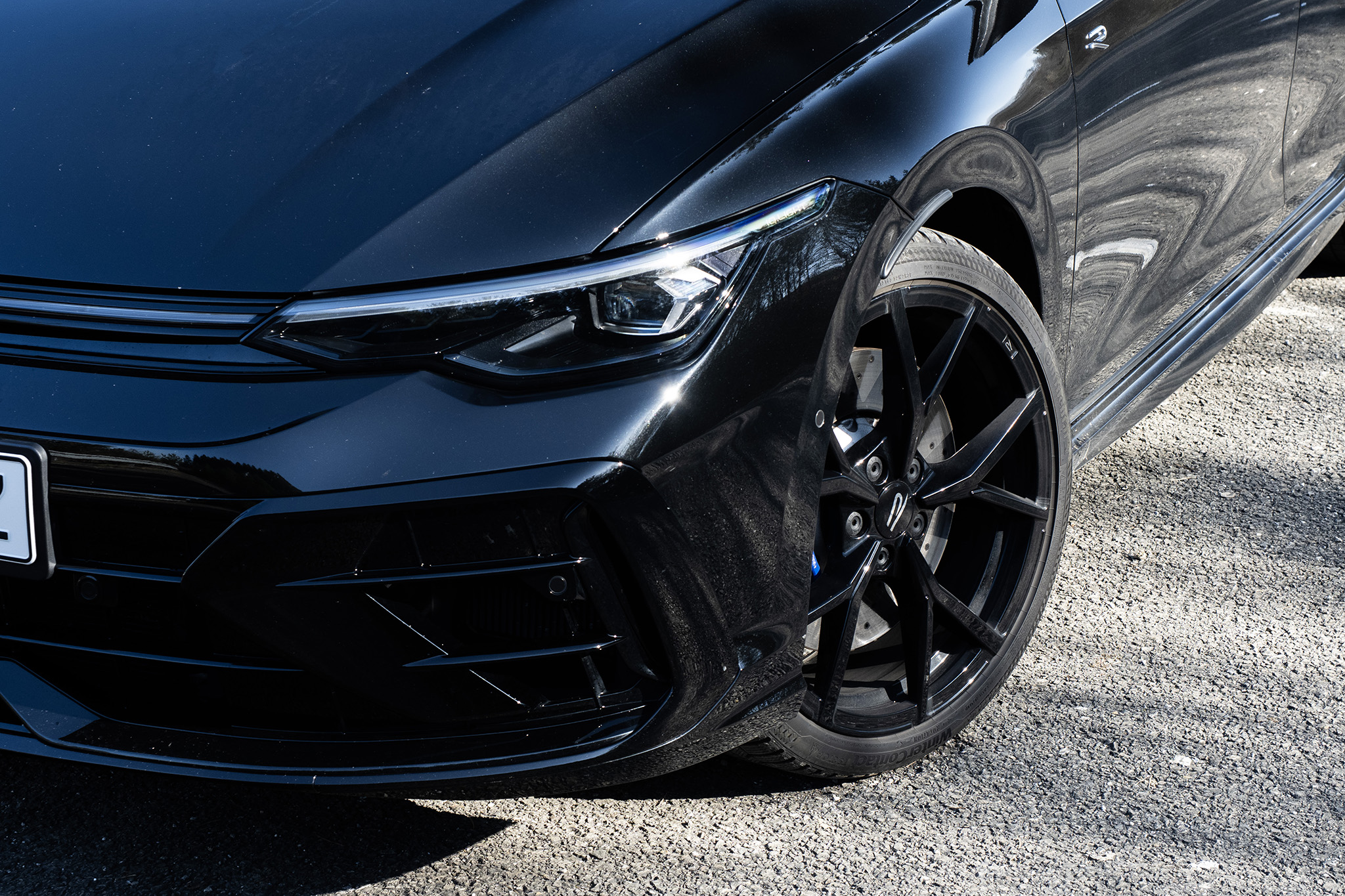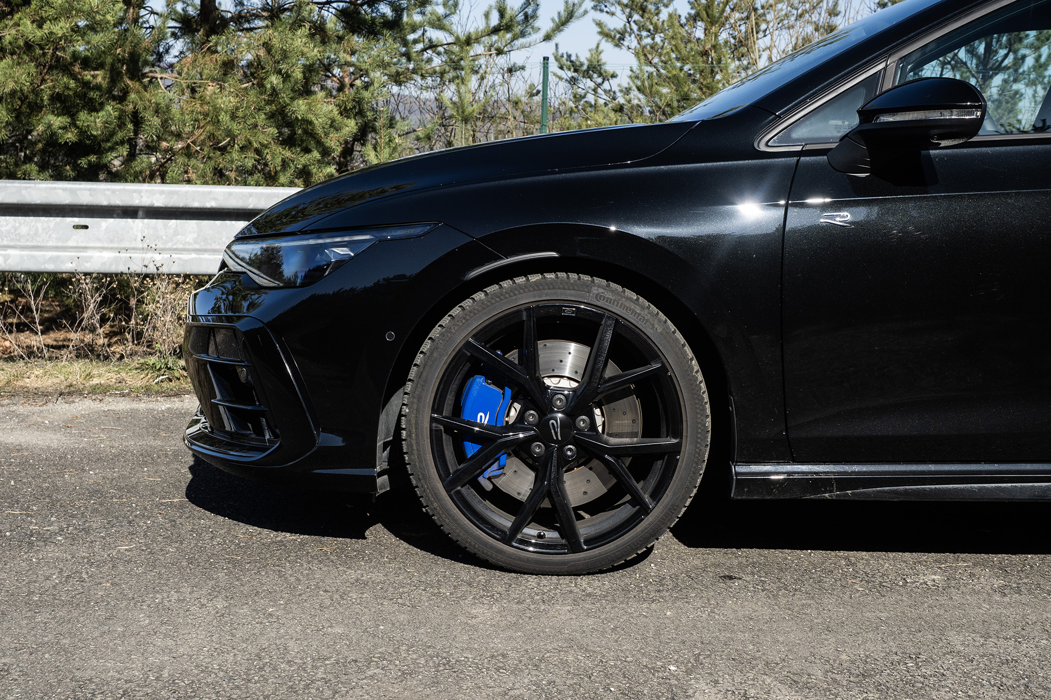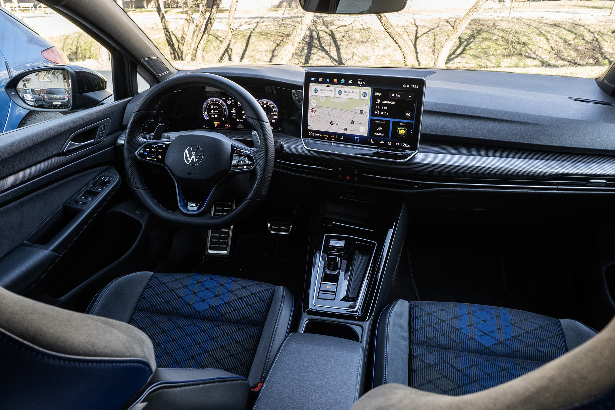 Ako si na špecifikovať Golf R variant? Jednoducho povedané, takto. Má balík Black Style, ktorý eliminuje všetky modré detaily a pridáva čierne spätné zrkadlá. Tie ale na čiernej farbe vidno nie sú.