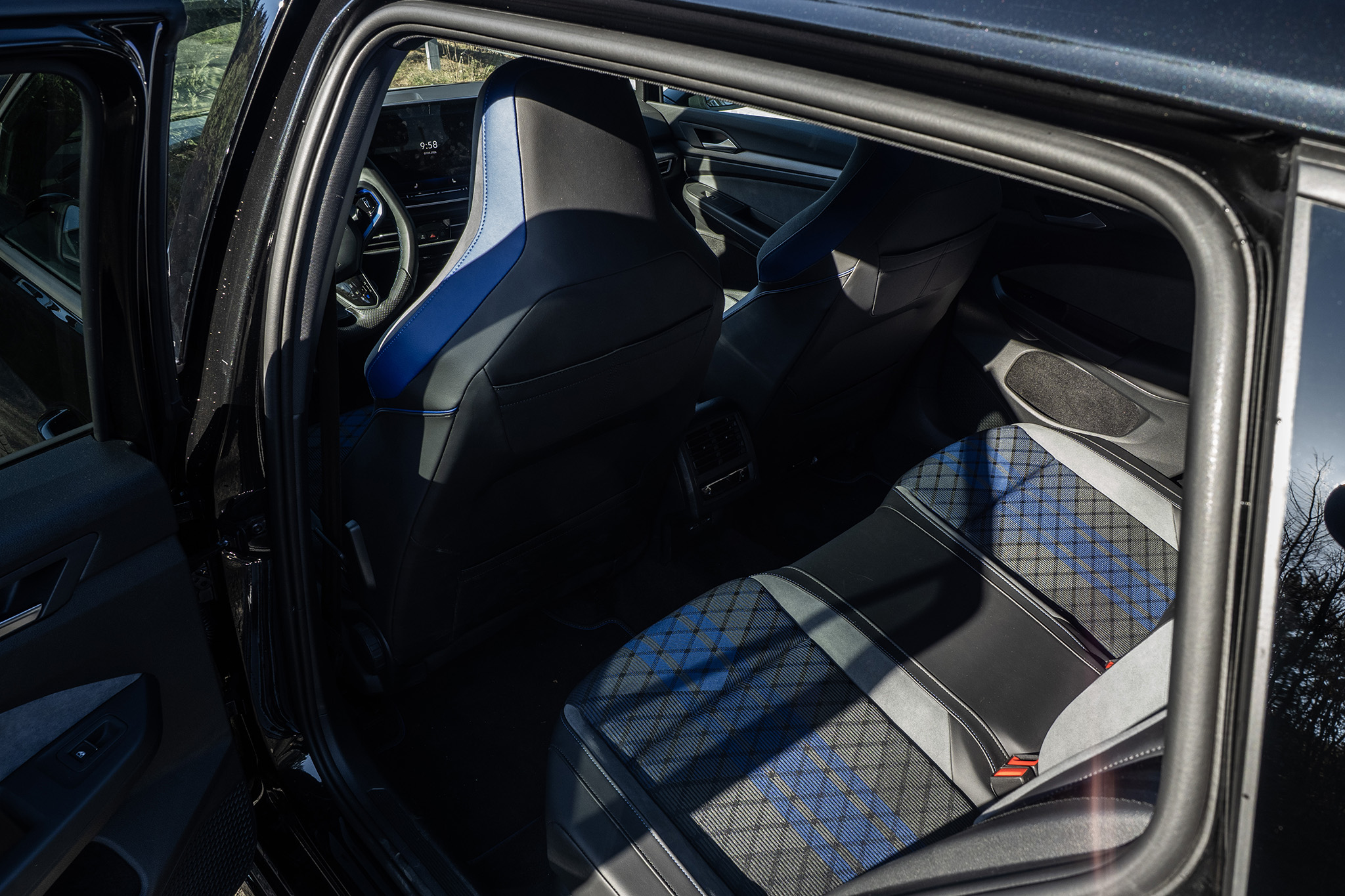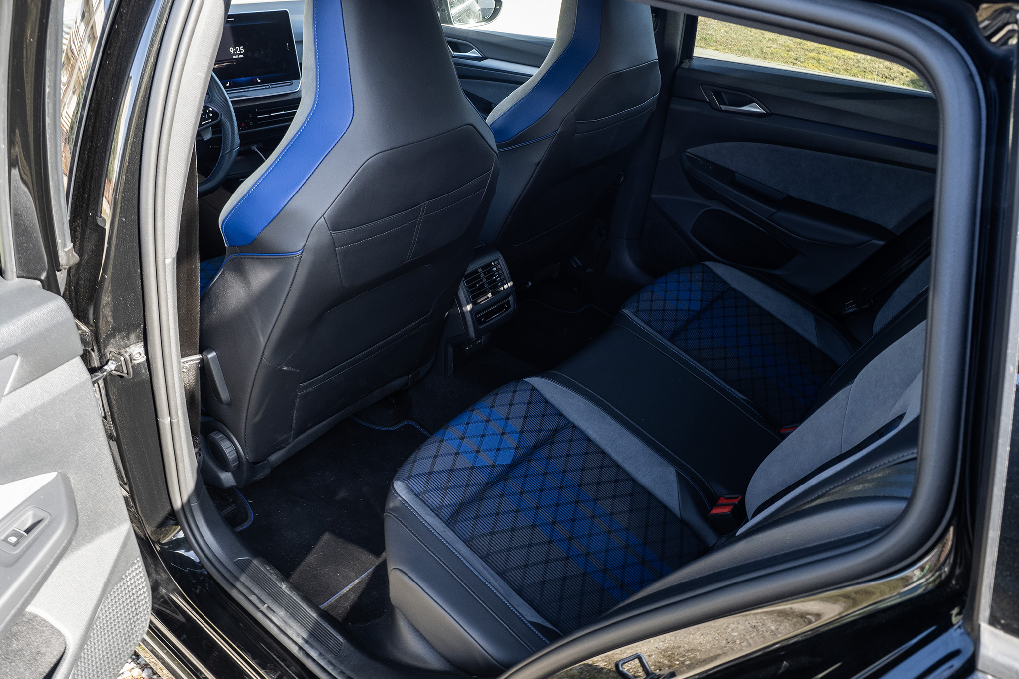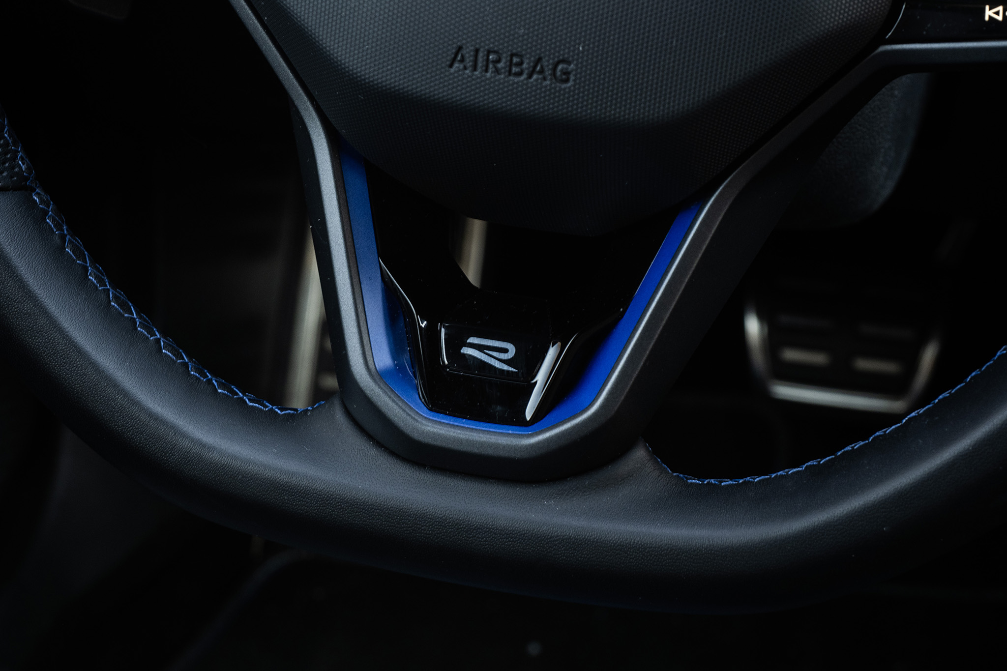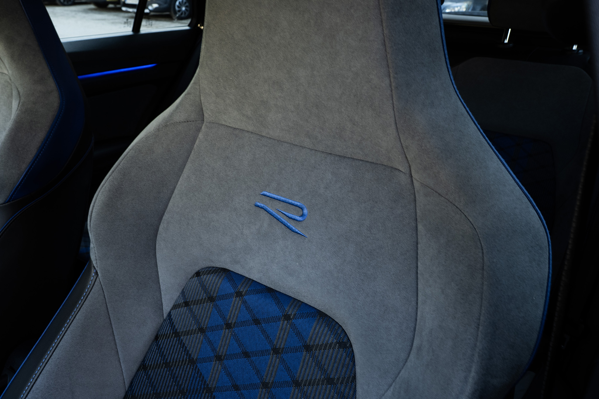 Ako si na špecifikovať Golf R variant? Jednoducho povedané, takto. Má balík Black Style, ktorý eliminuje všetky modré detaily a pridáva čierne spätné zrkadlá. Tie ale na čiernej farbe vidno nie sú.
