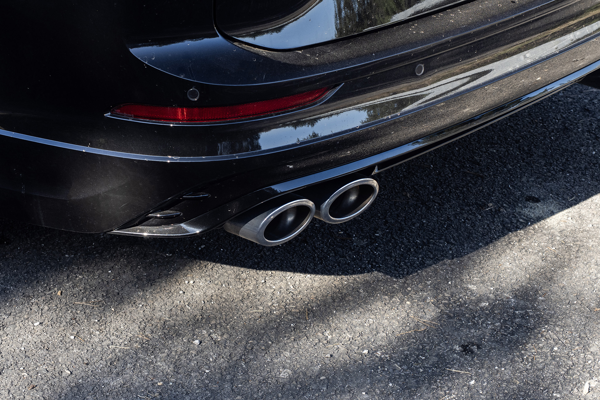 A aká je výhoda tejto konfigurácie? Tejto, keď je všetko čierne, a kričia iba koncovky výfuku? Jednoduchou výhodou môže byť to, že vás nikto nebude predbiehať 300-kilometrov za hodinu, lebo si bude veľa ľudí myslieť, že toto auto je policajné.