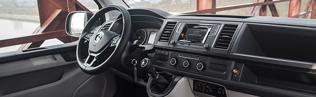 Späť na vodičovom mieste, najlepšom v celom aute sa nebudete cítiť ako v základnej dodávke. Hlavne ak priplatíte za multifunkčný kožený volant s takmer dokonalým tvarom. Rovnaký bol aj v Multivane, tak isto ako hlavica radiacej páky. Podobne ako vo väčšine úžitkových VW máte miesto aj na mobil. Až pohľad na pravú časť prístrojovky prezradí, že toto je pracovné auto. To, čo bolo v Multivane pekne zakryté ako priehradky sú to otvorené priestory. Ale zase treba uznať, že sa nám naozaj páčilo sivé prevedenie spodnej časti prístrojovej dosky. Celú prednú časť oživilo. Zaujímavé je aj ovládanie kúrenia v zadnej časti. Popri normálnom ovládaní klímy sa pod ňou objavil ešte jeden panel špeciálne pre zadnú časť. Takže, čo nastaví vodič, to nikto zo zadnej šestice neovplyvní. Neposlúchate, tu máte zimu!