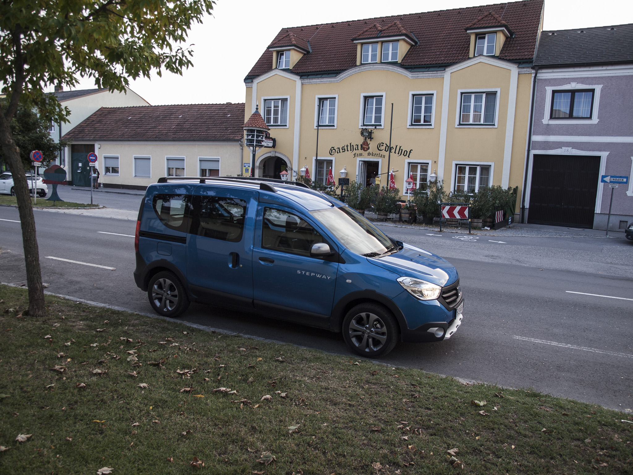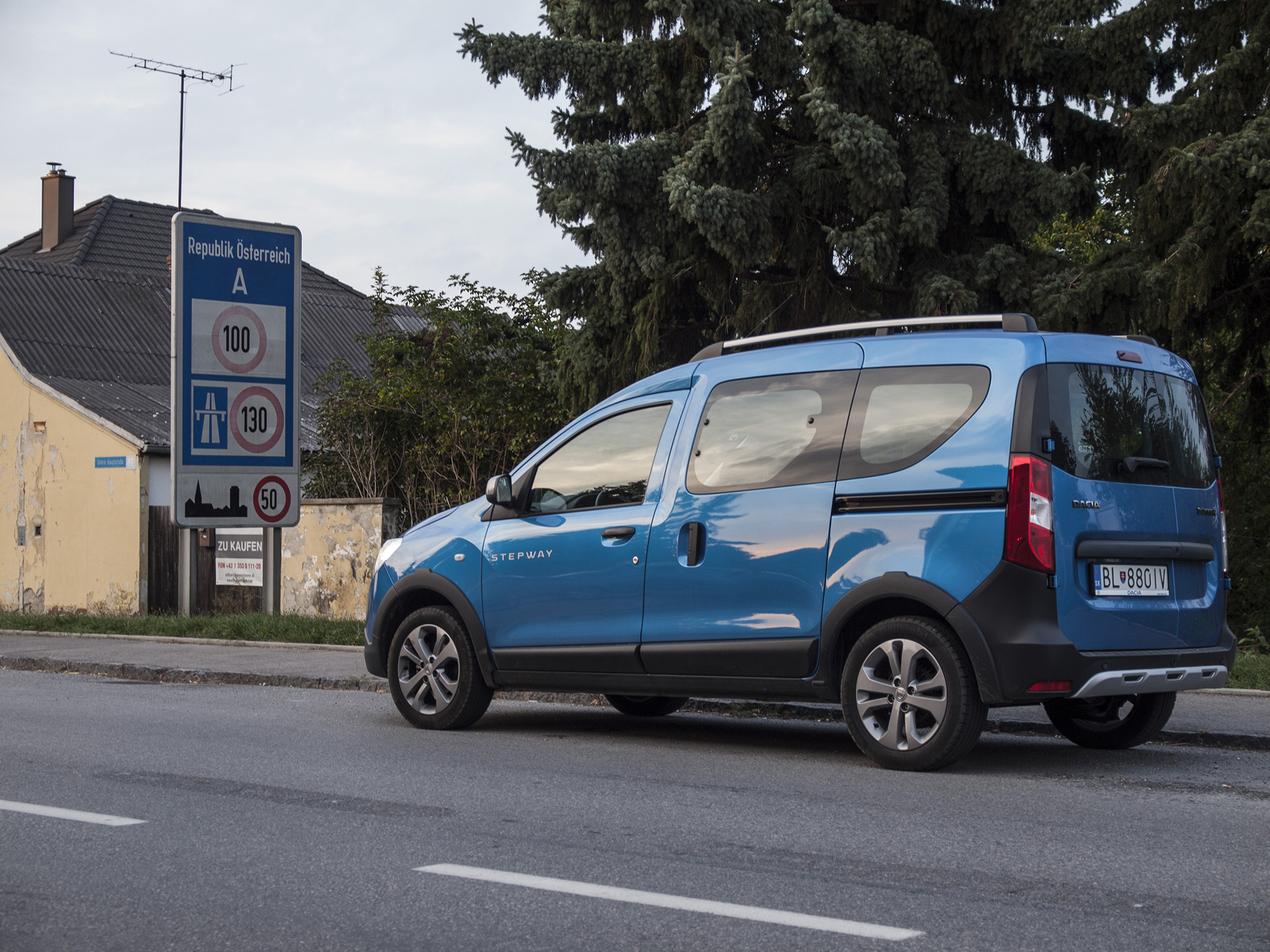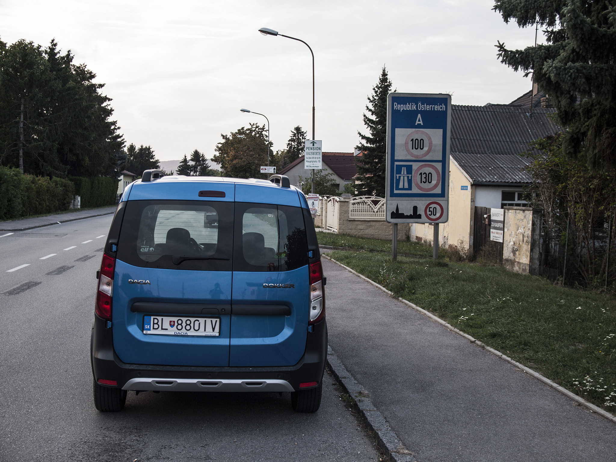 Z Púchova nakoniec vyrážame okolo 15:30 a nasleduje diaľničný presun do Bratislavy, dobre známa trasa ktorú sme s ním už absolvovali počas júnového testu. Opäť trochu obťažuje hluk a tradičná zhustená premávka. Napriek tomu, že Dokker nie je žiaden luxusný diaľničný krížnik, únava za volantom sa nedostavuje ani po niekoľkých hodinách strávených za jeho volantom, čo je u auta danej cenovej kategórie príjemným zistením. Do Bratislavy prichádzame ešte za svetla, obloha sa však začína mračiť a tak je treba zvoliť zrýchlené tempo presunu do ďalšej krajiny. Do maďarskej Rajky je to našťastie iba pár kilometrov. Počet áut s bratislavskou ŠPZ občas až vyvoláva pochyby či je človek v Maďarsku, tabule a miestny kiosk nás v tom ale utvrdzujú a tak vyťahujeme fotoaparát. Zopár nechápavých pohľadov dáva najavo, že fotiť si auto pri tabuli Rajka asi nie je na bežnom poriadku. Na programe je už len jedna krajina, ktorou je Rakúsko. Slnko začína pomaly, ale isto zapadať a tak je treba naplno využiť všetkých 90 koní Dokkeru, na ECO nie je čas.