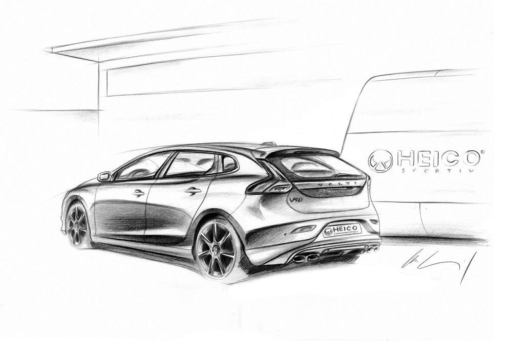 Tým je hatchback s označením V40 a približnú predstavu o tom, ako by mal po zásahu úpravcov z Heica vyzerať si môžete urobiť z priložených náčrtov. Jeho kontakt s vozovkou by mali sprostredkúvať nízkoprofilové pneumatiky obuté na sedemlúčových diskoch a o dôstojný zvuk by sa zasa mal postarať výfukový systém so štyrmi oválnymi koncovkami.